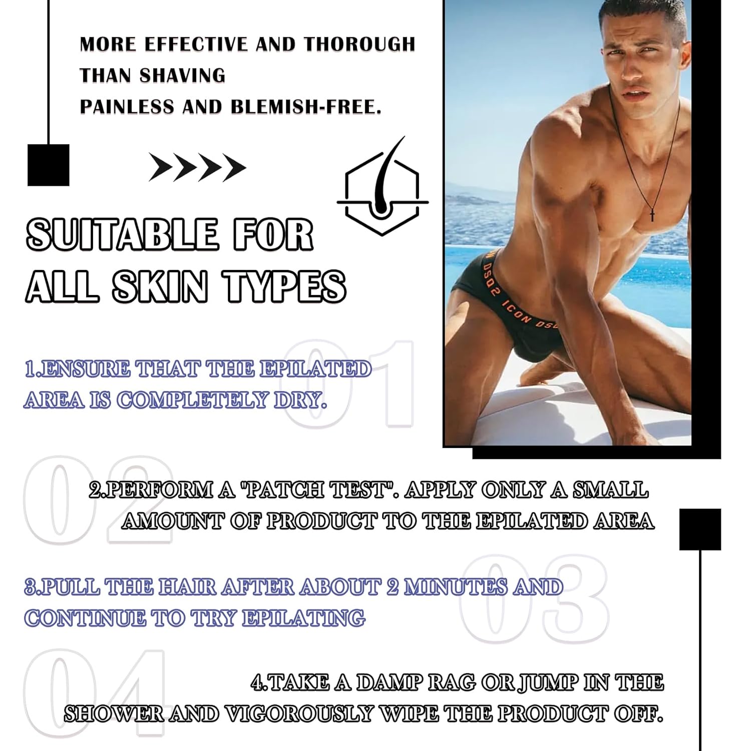 😎【Easy to Use】Hair remover depilatory cream for men is easy to use, no professional skills or tools, easy to use at home, can provide you with a comfortable hair removal experience.