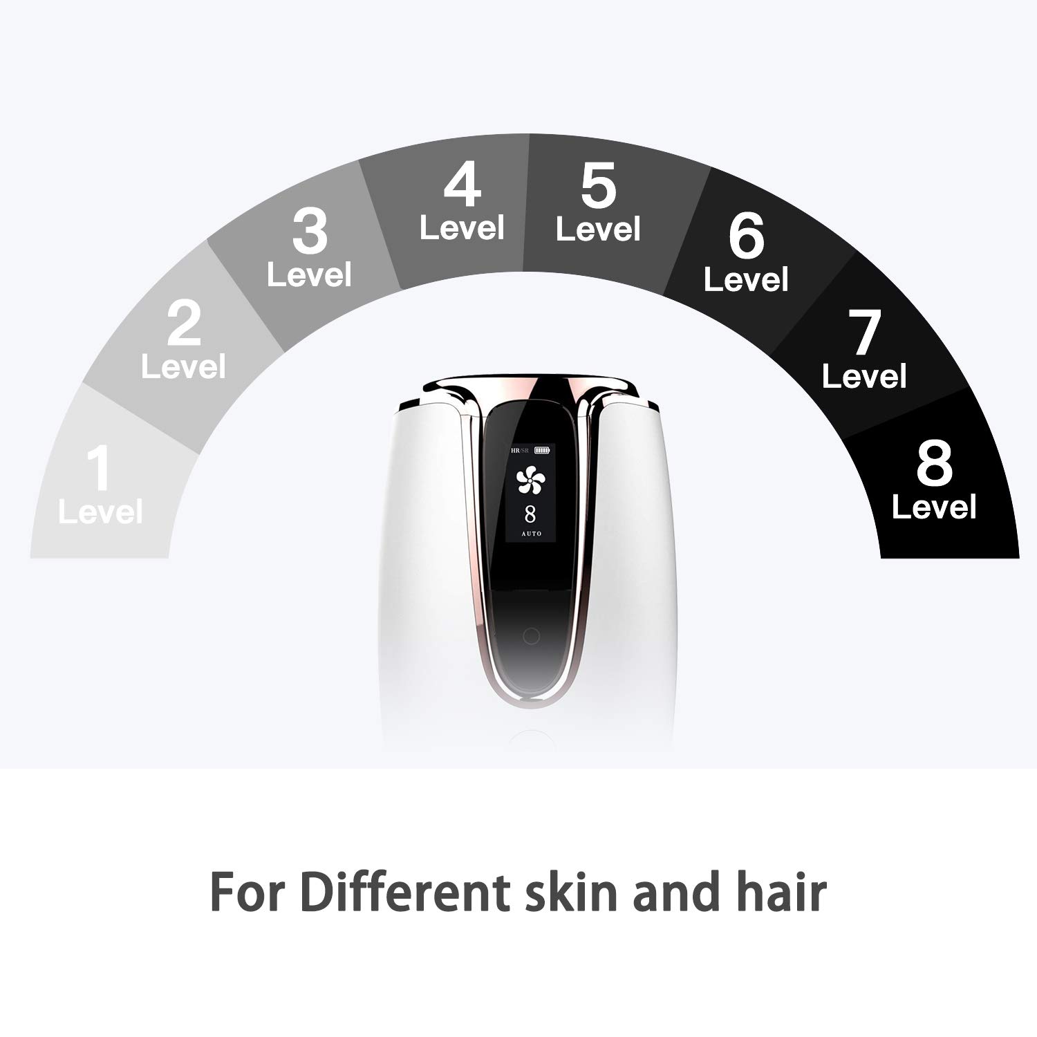 【1-8 Level Selection】IPL hair removal use hand-held design, easy to install and easy to carry. LCD display.1-8 Level Selection.Please choose the suitable level which your skin can bear.