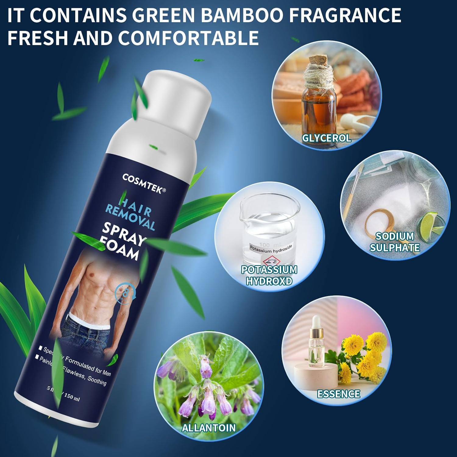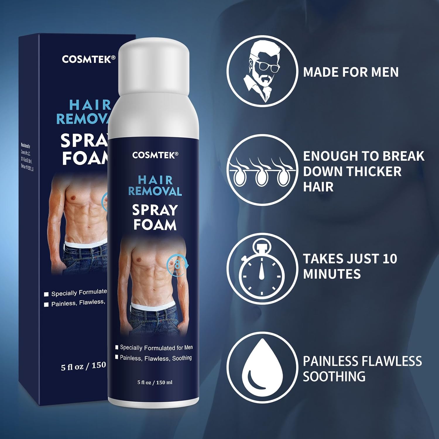 Hair Removal Spray Foam for Men, No Irritation Hair Removal Cream, Safe Hair Depilatory for Male underarm, Chest, Back, Legs, Suitable For All Skin Types