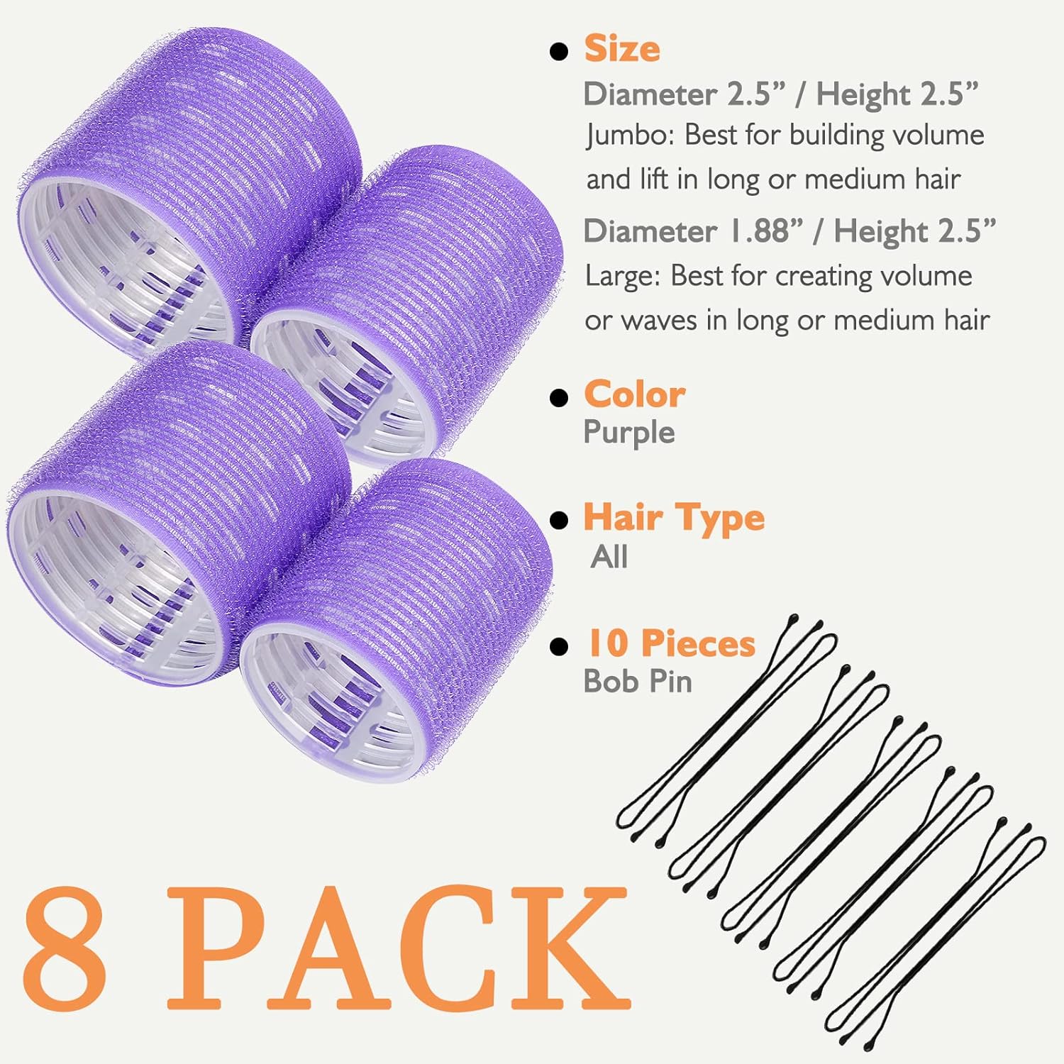 Hair Rollers 8 Pack, Self Grip Hair Curlers Assorted Size Heatless Hair Curlers, Velcro Rollers Styling Curling and Appliances with Storage Bag and Clips (2 in 4 Pack & 1.9 in 4 Pack)