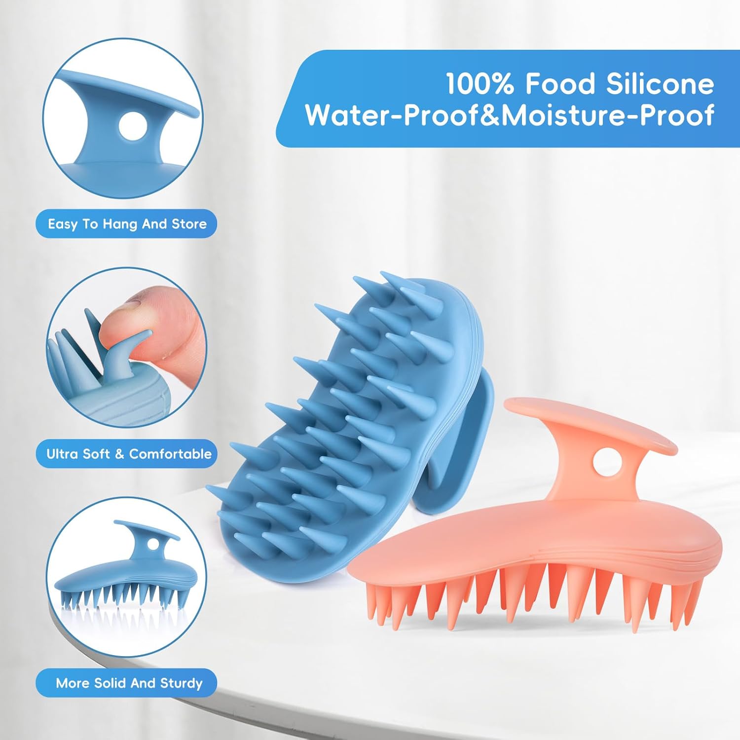 Hair Scalp Massager Shampoo Brush 2Pack, Scalp Scrubber 100% Silicone,Scalp Exfoliator for Dandruff Removalfor, Hair Brush for Hair Growth,Waterproof(Blue+Orange)