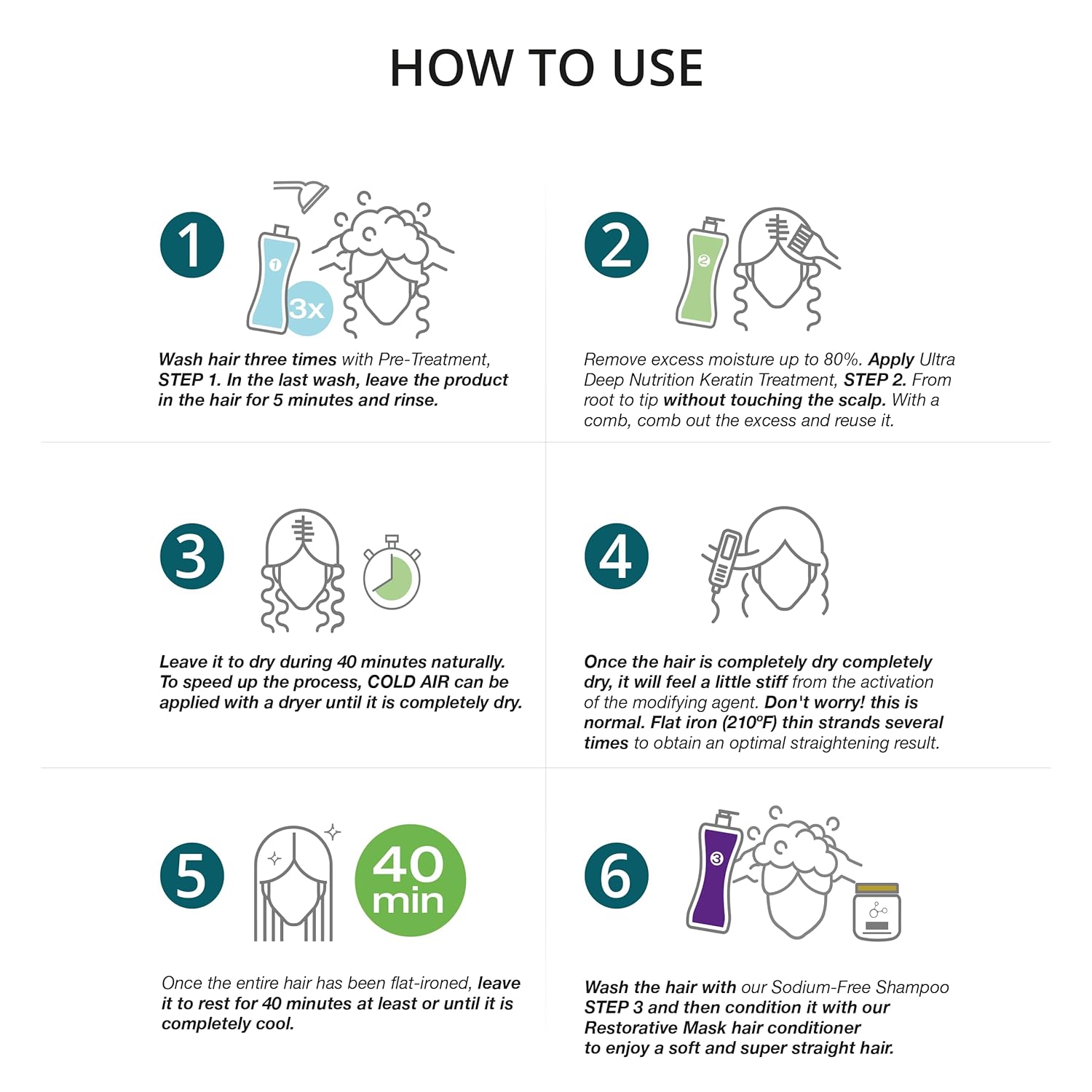 This product has two forms of application. Specifically in step number 4, you can rinse your hair with enough water. Dry the hair, removing all the moisture with the blower, and then proceed to seal it with the straightener, adjusting the temperature according to the hair type. Iron the fine strands several times until optimal straightening is achieved.