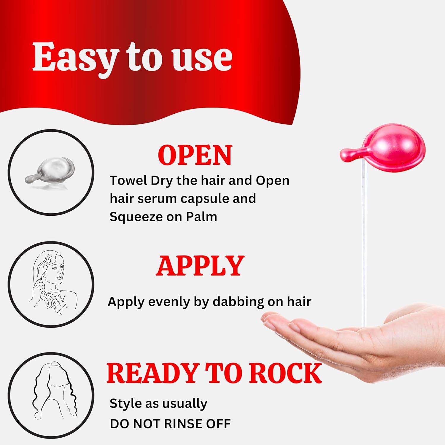SIMPLIFY YOUR ROUTINE: Skip the extra rinse step with this no-rinse hair serum that nourishes as you style. Just apply the serum from the capsules after washing and proceed with drying or styling.