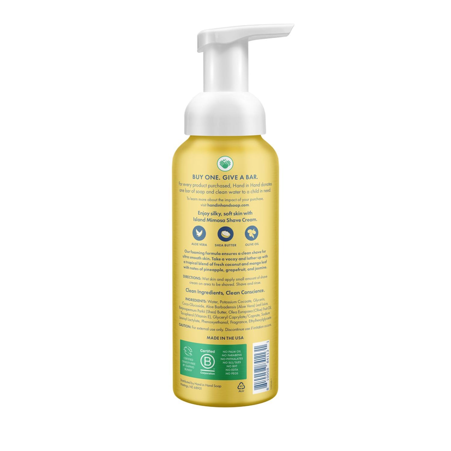 Hand in Hand Shave Foam for Women with Moisturizing Ultra-Smooth formula, No Parabens or Phthalates, Island Mimosa Scent, 8 ounce