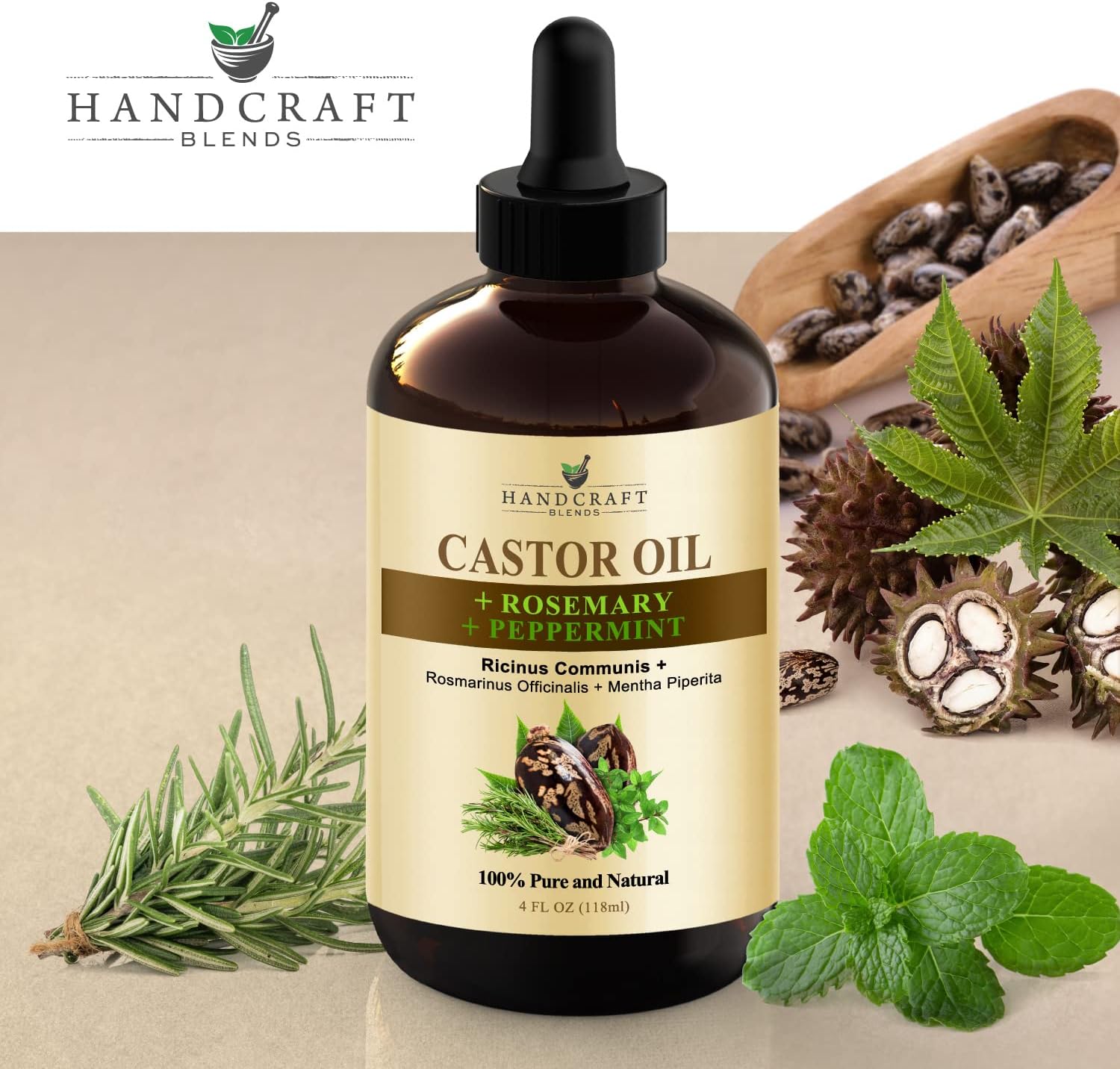 Handcraft Blends Castor Oil with Rosemary and Peppermint Oil in Glass Bottle – 4 Fl Oz – 100% Pure and Natural – Premium Grade Oil for Hair Growth, Eyelashes and Eyebrows – Hair Relaxer