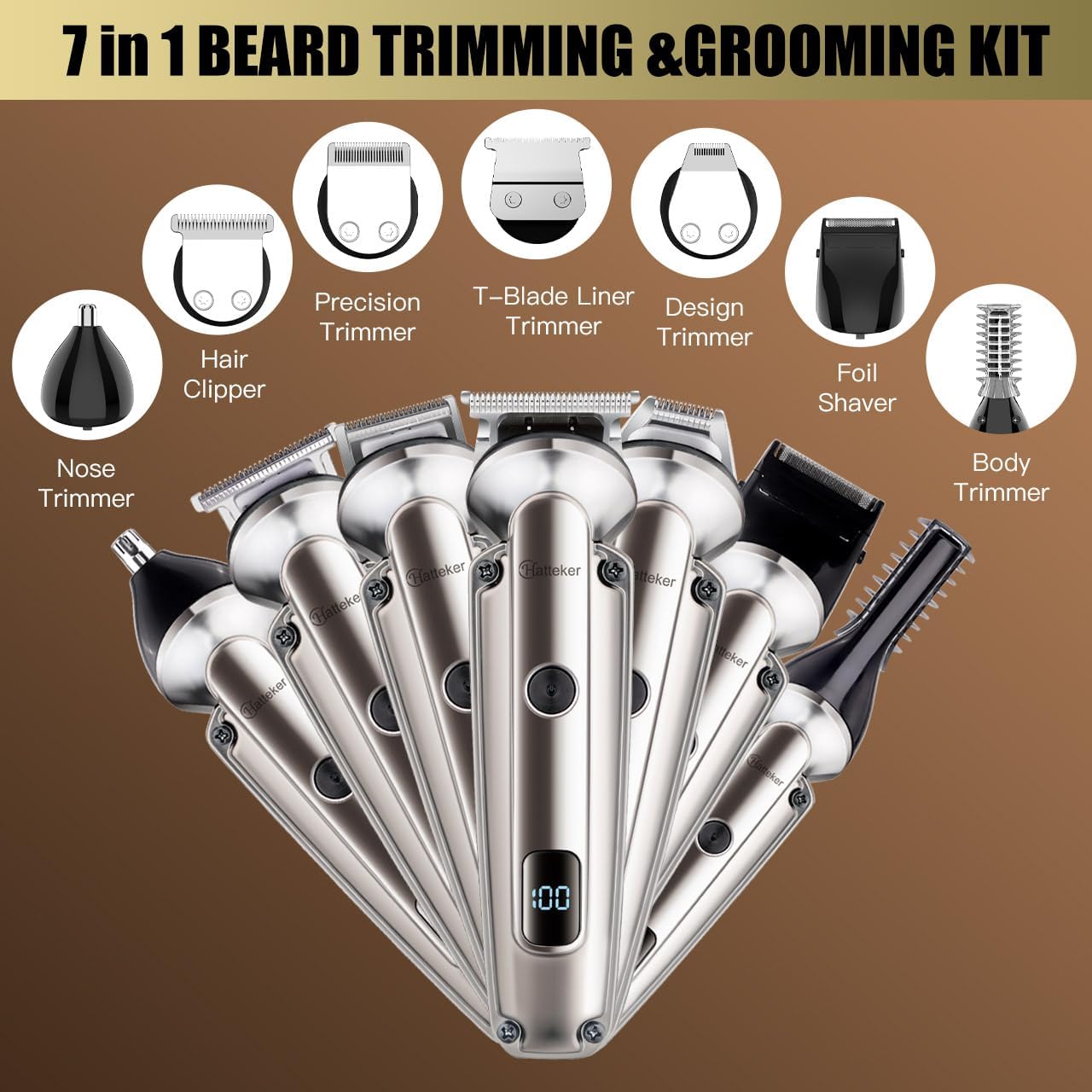 Hatteker Beard Trimmer for Men, Waterproof Hair Trimmer Electric Razor, Cordless Hair Clippers Shavers for Men, Shaving Kit for Nose Mustache Body Facial, Beard Grooming Kit Fathers Gifts for Dad