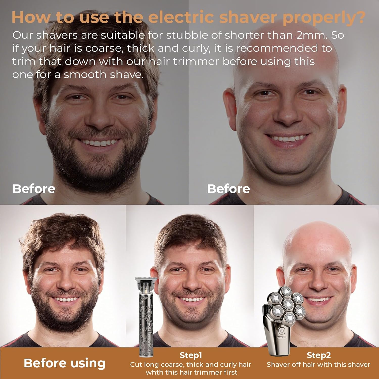 【IPX7 Waterproof Dry and Wet of Head Shaver】This head shavers for bald men is IPX7 waterproof support dry shave, wet shave and bath shaving, so you can easily shave your head in the bath or shower for an effortless clean-up. With shaving foam to soften the beard, enjoy a cleaner shave.Note: Please clean each blade the hair and dry the shaver after cleaning to keep long life.