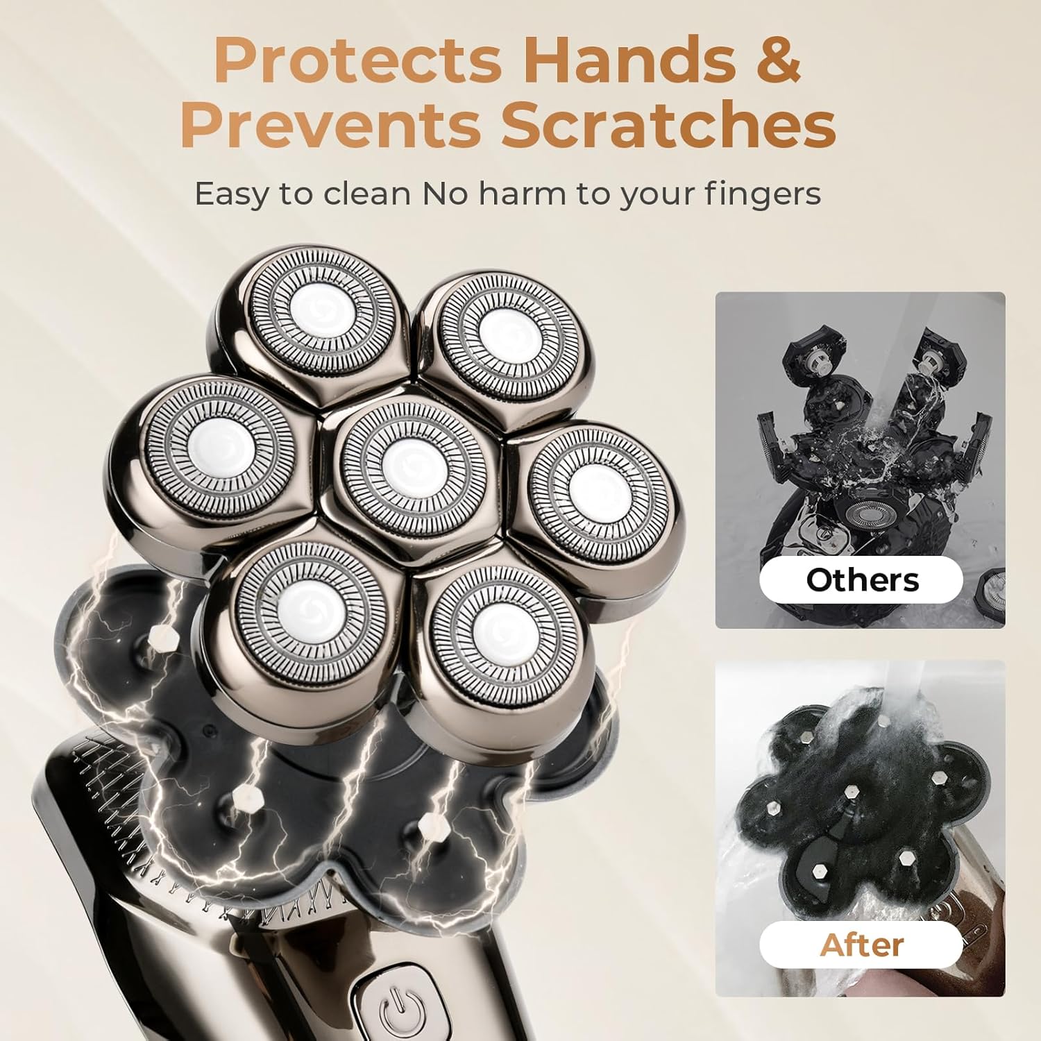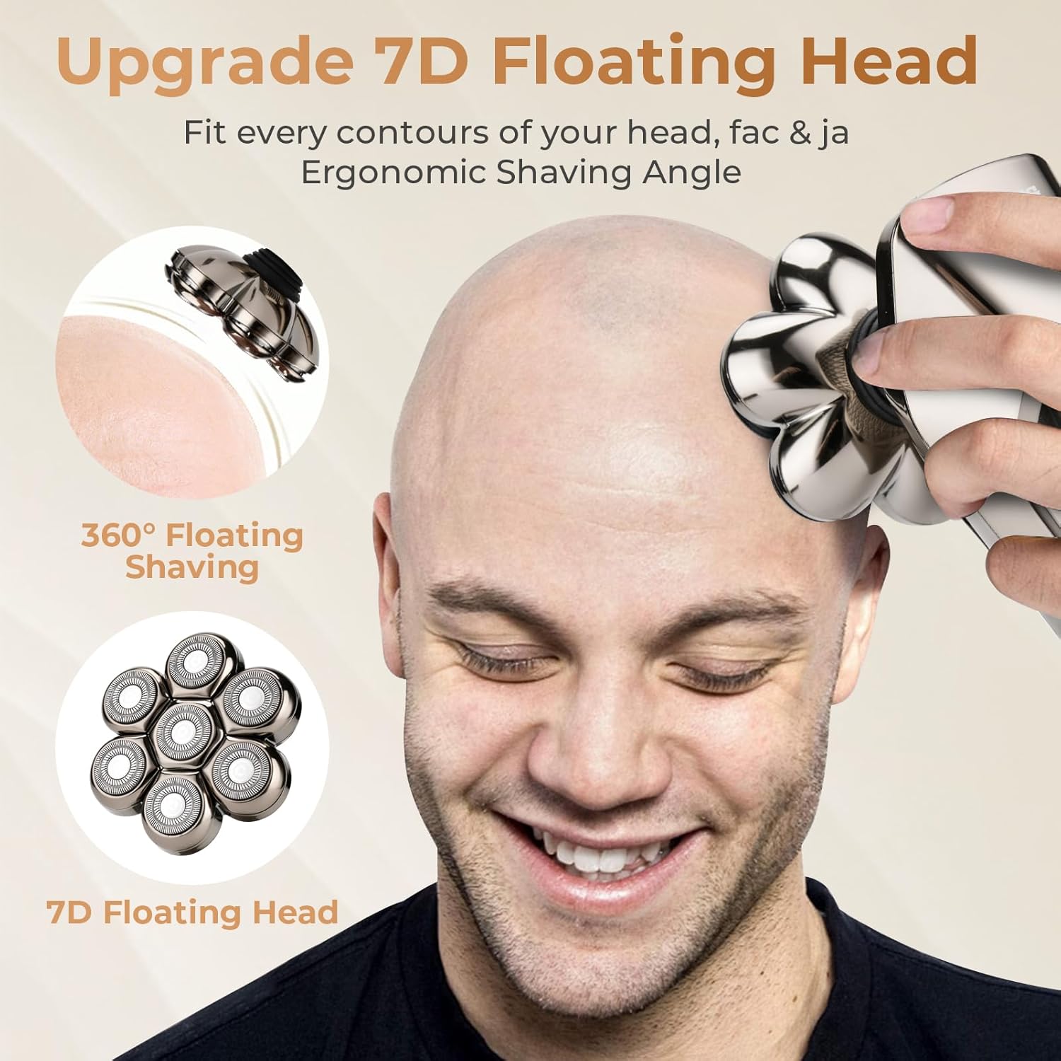 【Smooth of Floating Head】:The 7 blade heads can rotate flexibly, fit your head and face contour. Ultra flexible 7D pivoting blade design increases the shaving area and saves shaving time. Provide a comfortable smooth and close shaving experience.