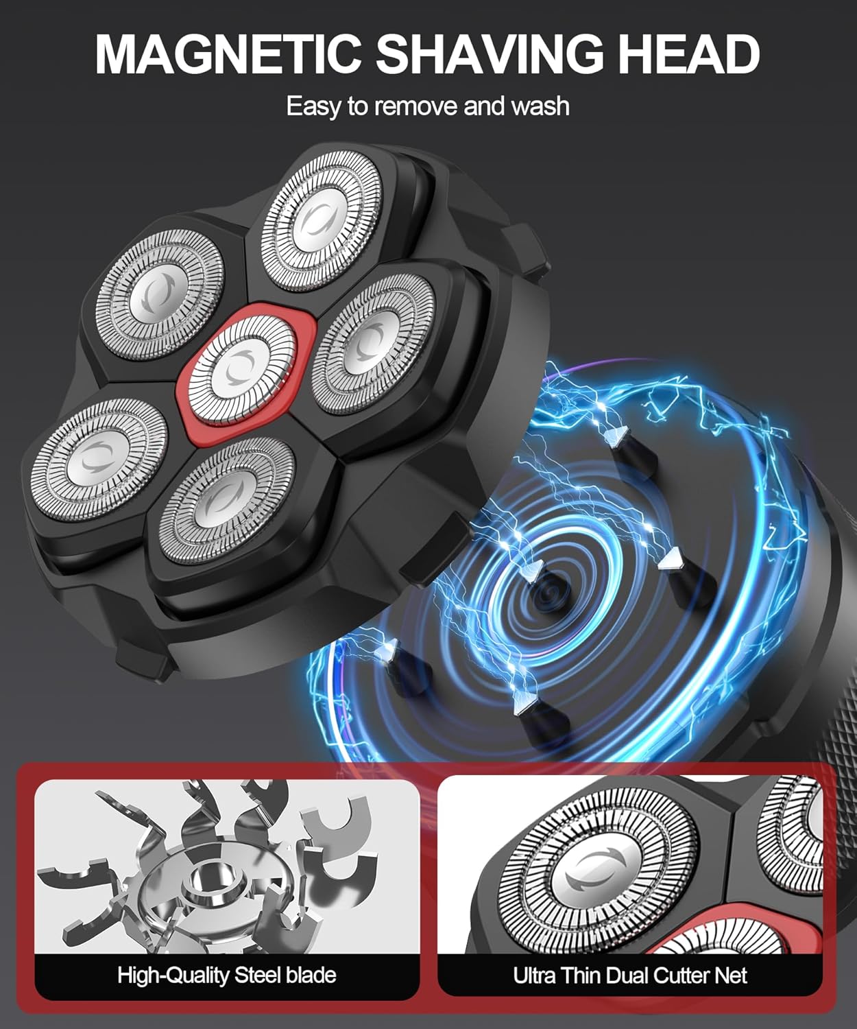 Detachable Magnetic Shavers: Redbreak magnetic electric razor features a newly upgraded magnetic design that allows for easy removal and installation in less than a second. Simply remove the entire blade for washing and easy storage. After each shave, remove the razor head to clean up all trapped hairs and keep the razor head in top working condition. Razor Brush Stands