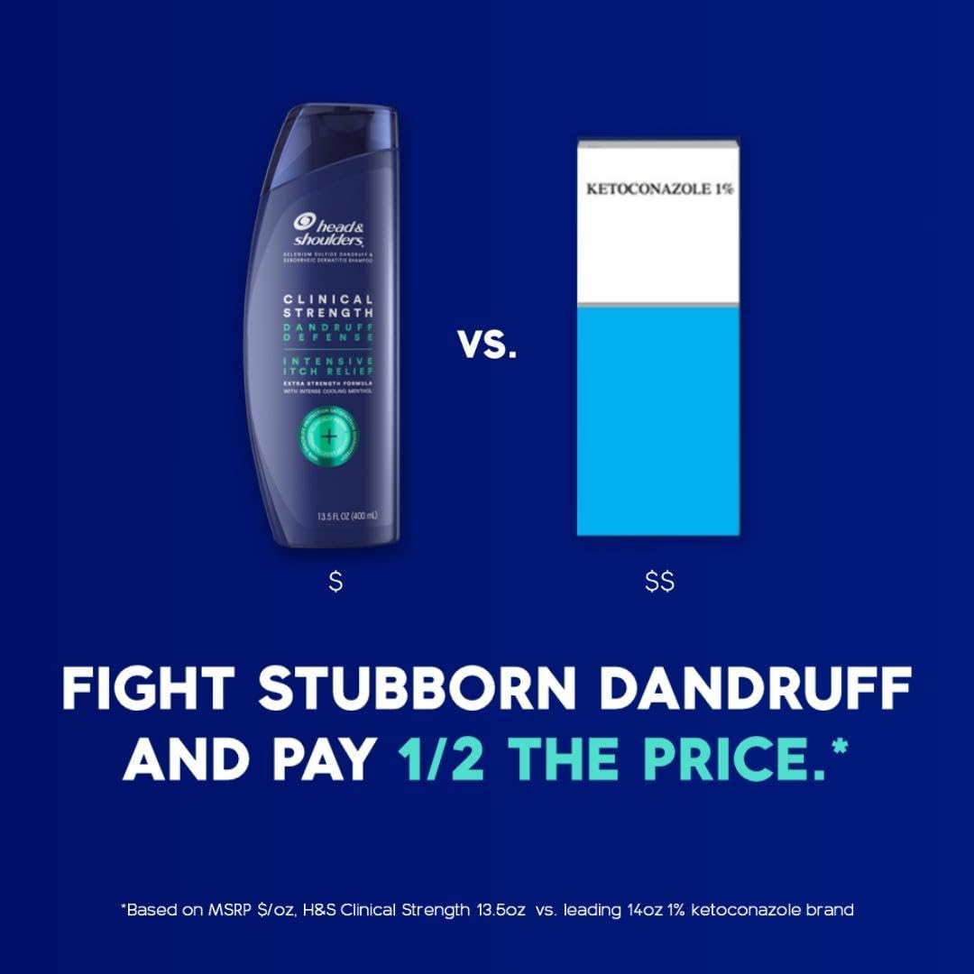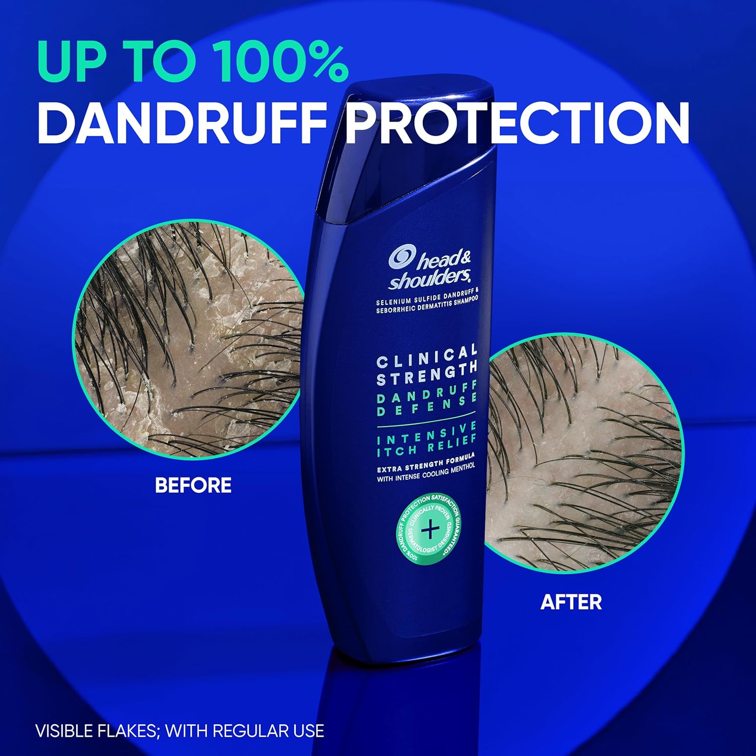 Head & Shoulders Clinical Strength Dandruff Shampoo, Selenium Sulfide Dandruff Defense, Intensive Itch Relief, Seborrheic Dermatitis Relief, Cooling Menthol, 13.5 Fl Oz Each, 2 Pack