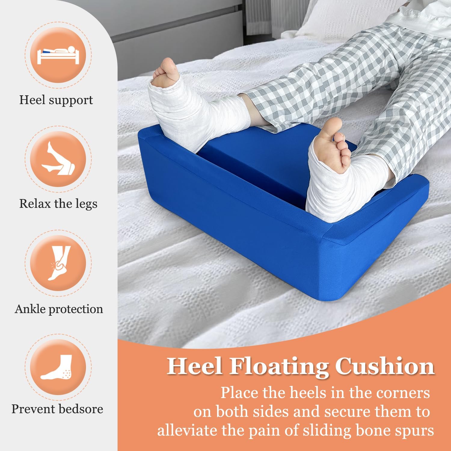 👩⚕️【Heel pillows for pressure sores】Lift the legs to promote leg blood flow, support the heels, and relieve leg and heel bedsores. It also works when the patient turns on his or her side to sleep, and it is also convenient to care for the patient.