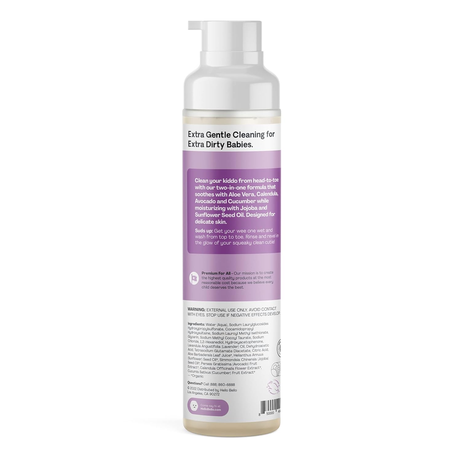 The Hello Bello Lavender Shampoo & Body Wash uses natural essential oils to provide a soft, soothing scent while gently cleaning babies and kids.