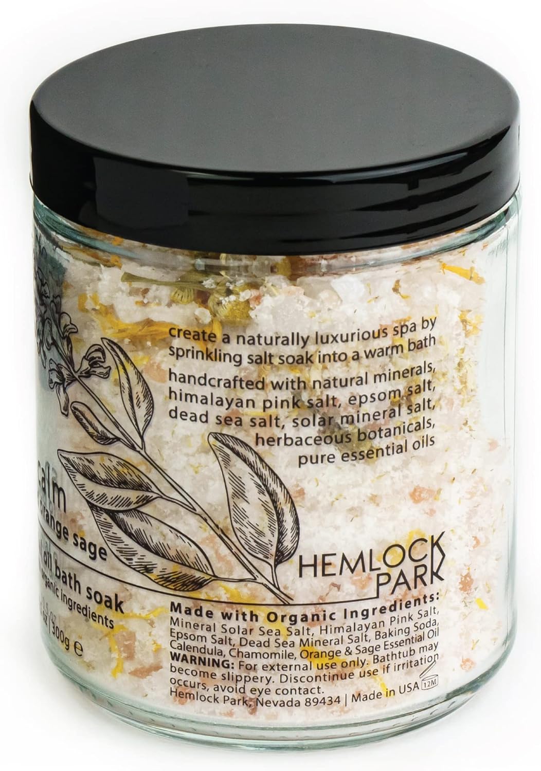 Hemlock Park Natural Essential Oil Bath Soak | Soothing Mineral Sea Salt and Botanicals (Calm | Blood Orange Sage, 1 Jar)