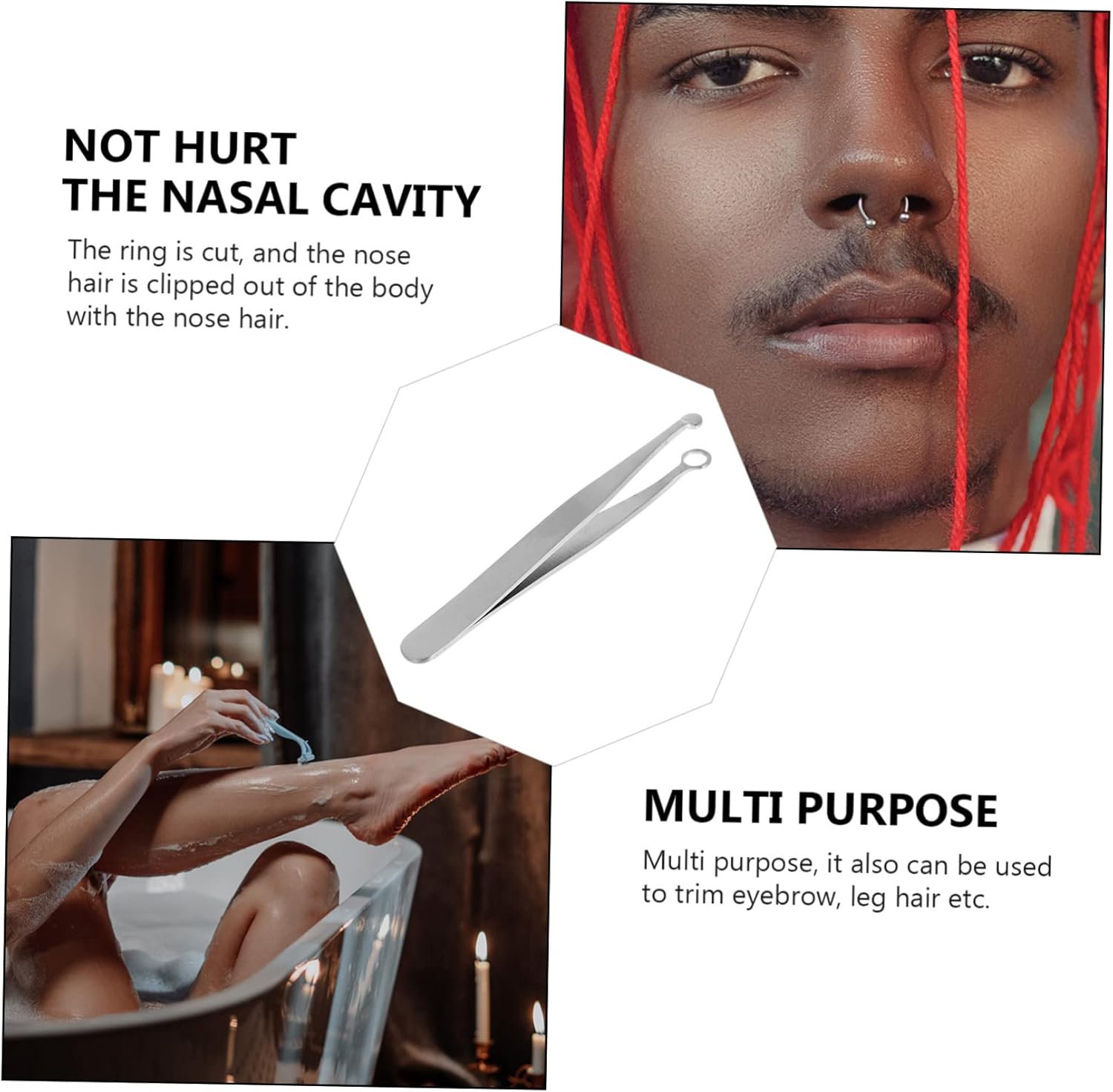 – Clip Size: 9.70X1.00X0.80cm/3.81X0.39X0 Nasal Hair Removal Tool.