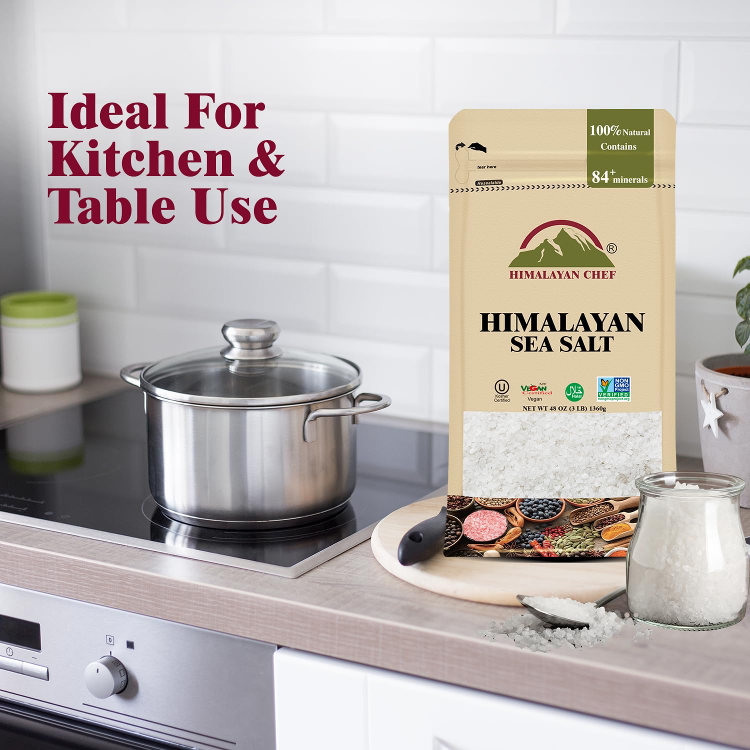 Himalayan Chef Sea Salt, All-Natural Fine Grain, 48 Ounce Sea Salt Bag, Non-Iodized, No Additives, Unrefined Mineral Salt for Daily Cooking
