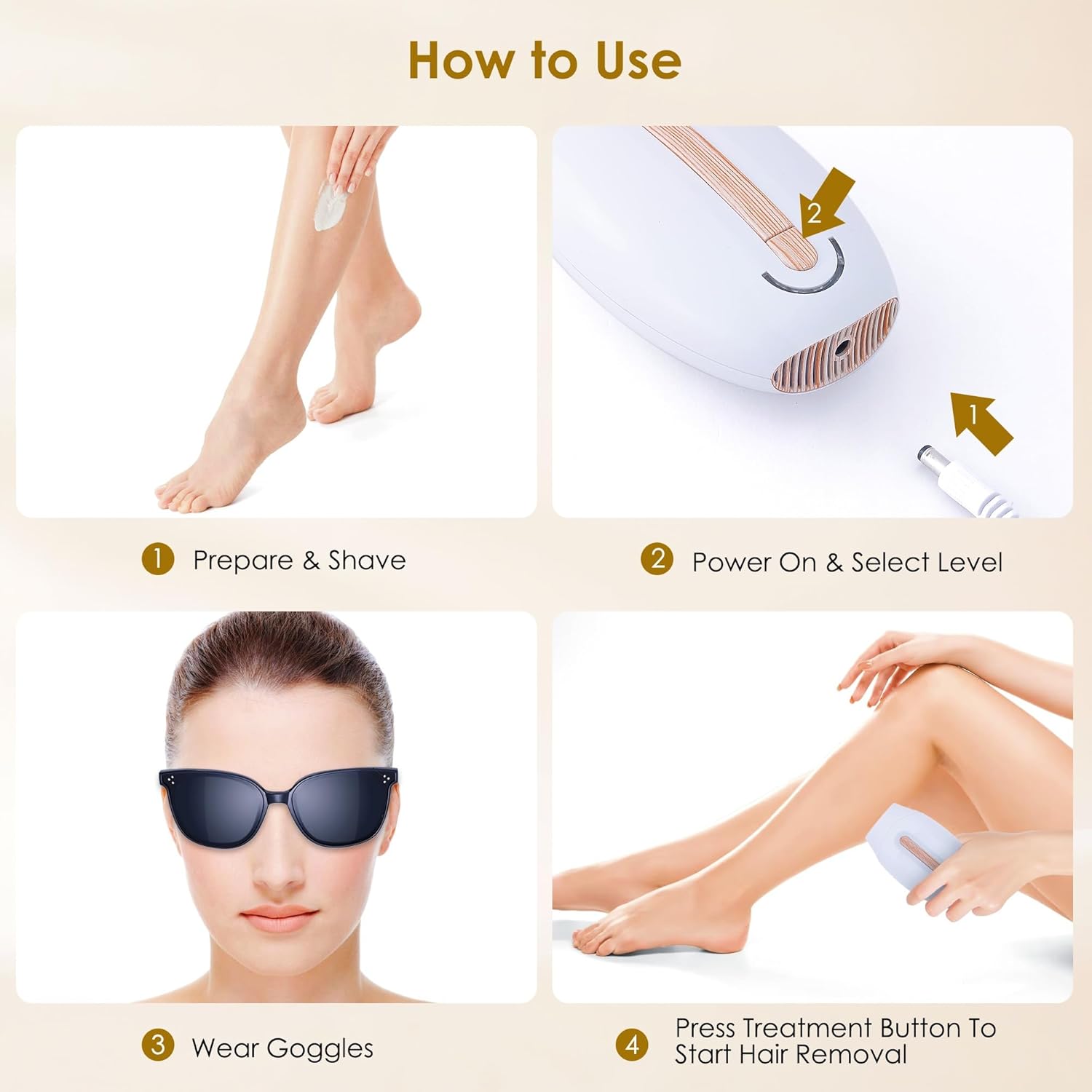 Painless Precision: Intense pulsed light technology treats hair follicles without pain, adjustable energy levels for custom treatments of body areas like face, bikini, arms and legs.