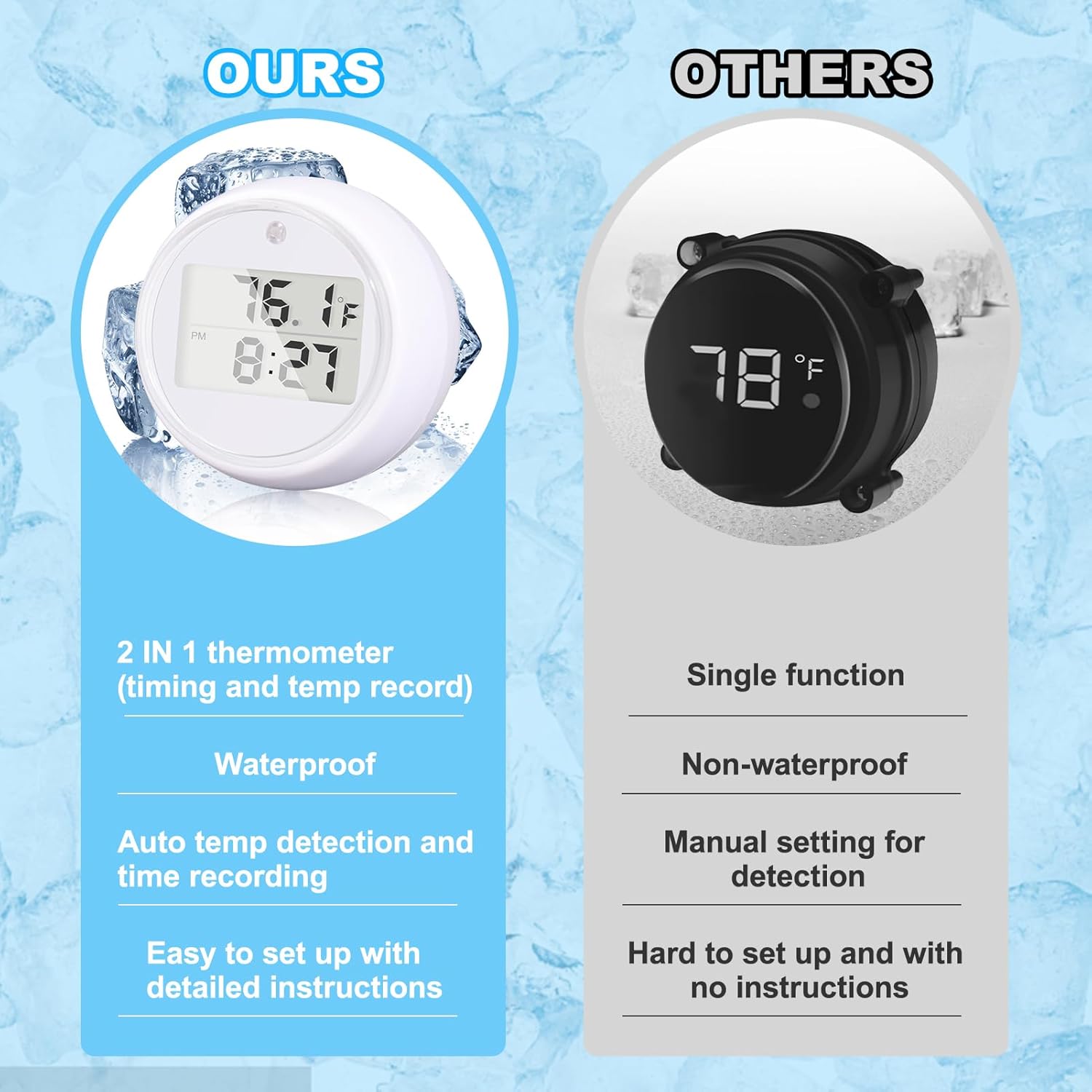 IPX66 Waterproof: This ice bath thermometer has pass several test for floating design, is available to float on the water without water damage. Built with rubber ring within battery cover to prevent water seeps in. Just start a safety and breeze bath time with this waterproof ice bath thermometer