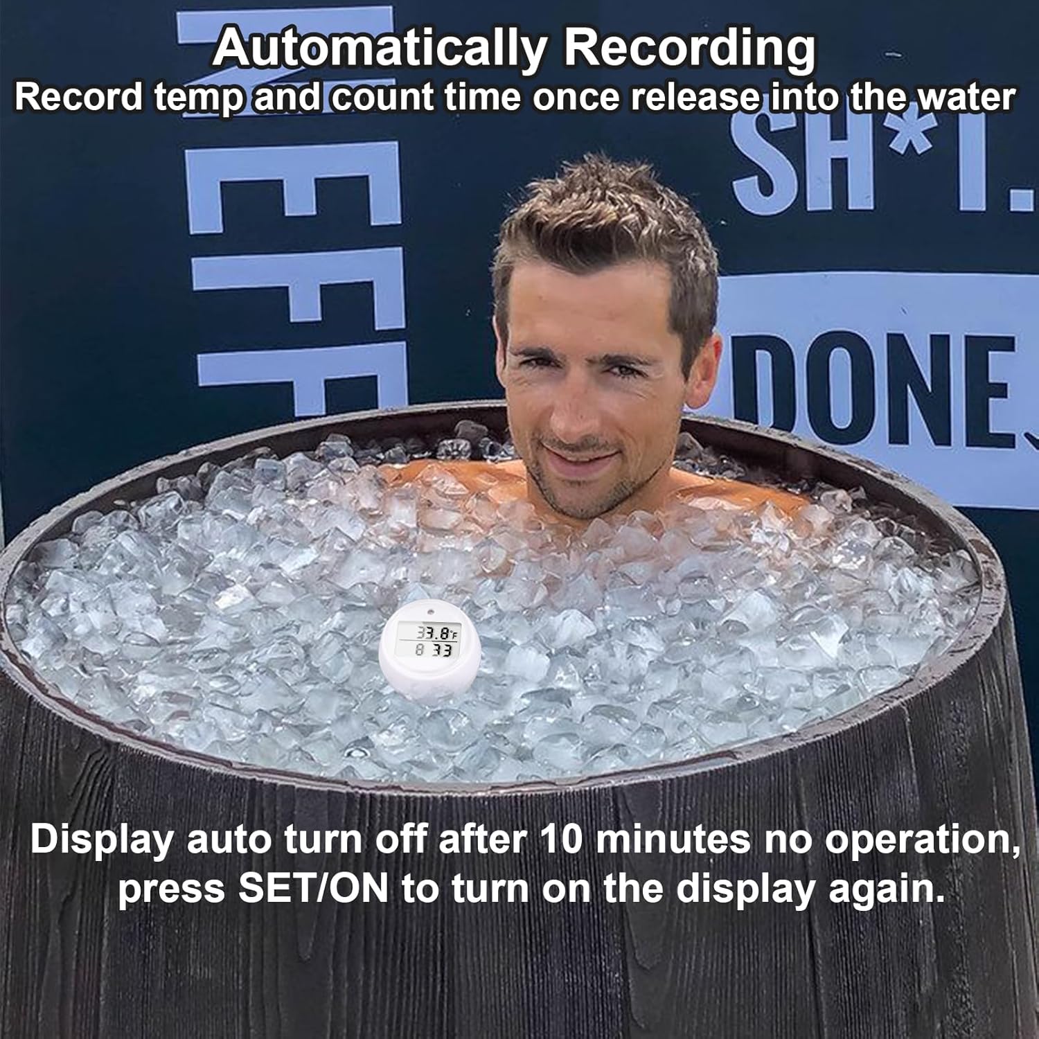Ice Bath Thermometer with Timer, Floating Waterproof Thermometer for Hot-Cold Bath, Cold Plunge Essential Tool with Clear Display/Flashing Light/Time Alert, Ice Bath Tub Accessories