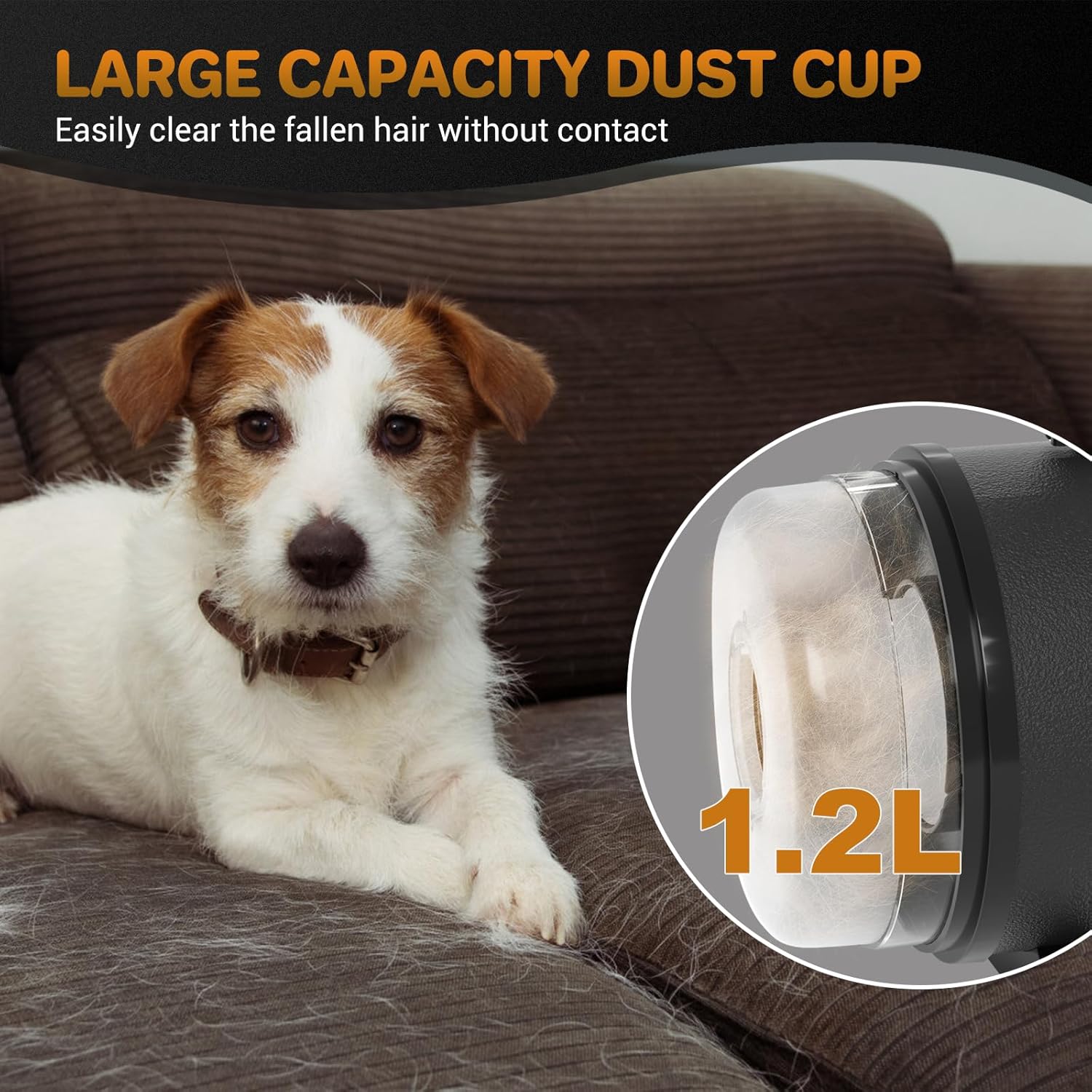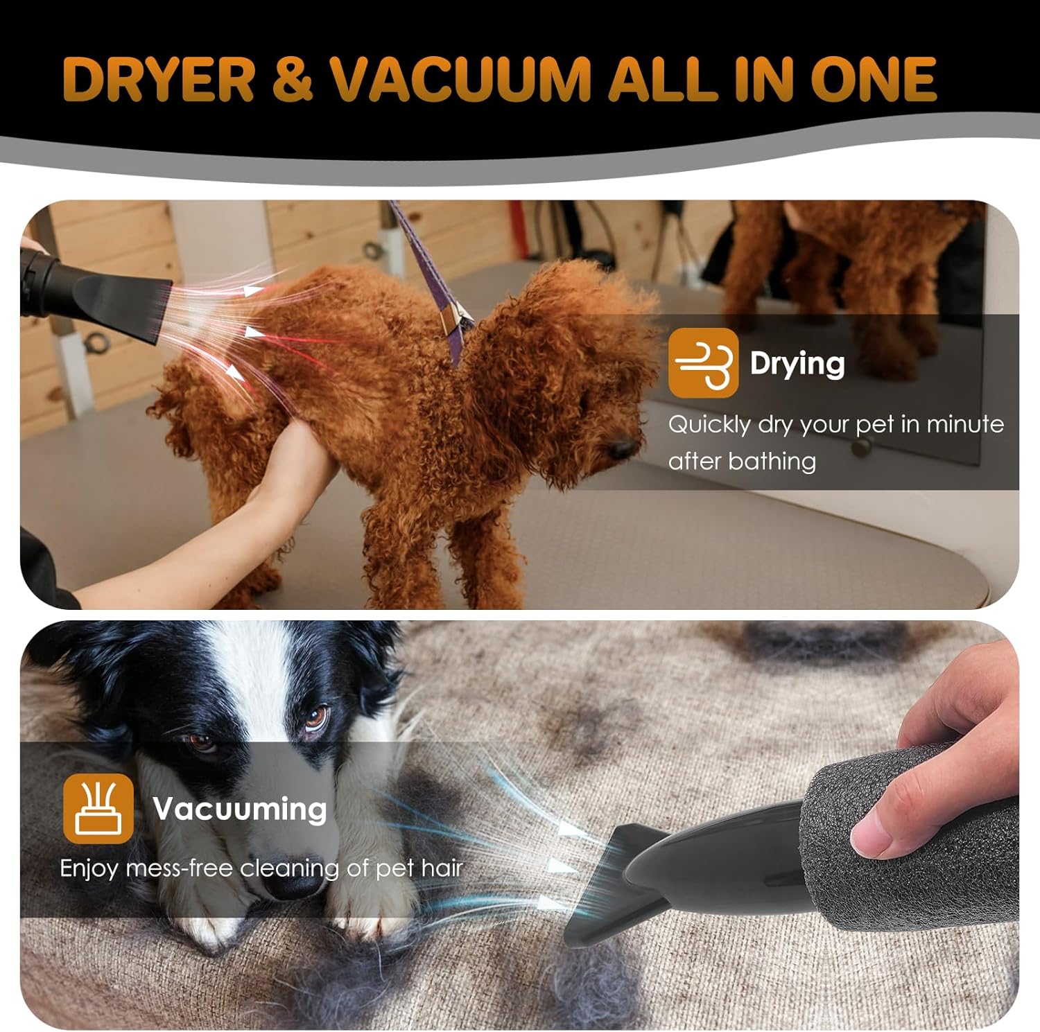 【1.2L Large Dust Cup】Our dog hair dryer & vacuum features a 2-in-1 design and is upgraded with a 1.2L dust cup, which can accommodate scattered pet hair, making grooming process cleaner and tidier. Operation is also very simple, just simply twist and open the lid of the removable dust cup after use and dump all the hair directly into the trash can.
