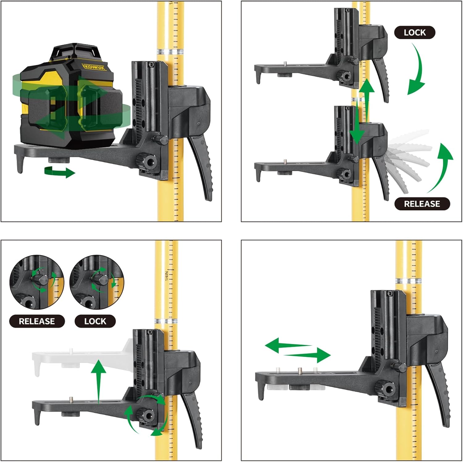 🔧【Easy to Install & Remove】The laser level rotation pole can be quickly installed and removed. It features precise scales to help users accurately set the height. IKOVWUK also provides a carry bag for easy storage and portability.