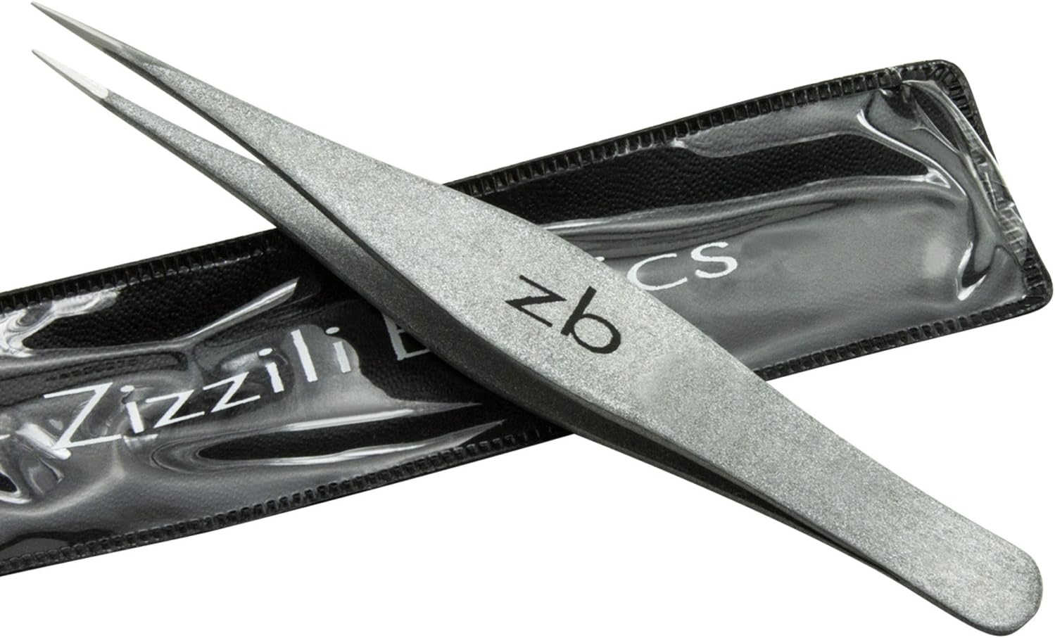 Ingrown Hair Tweezers by Zizzili Basics – Surgical Grade Stainless Steel Fine Pointed Tweezer – Precision Aligned Tips for Splinter, Eyebrow & Facial Hair Removal – with Bonus Tip Guard & Carry Pouch