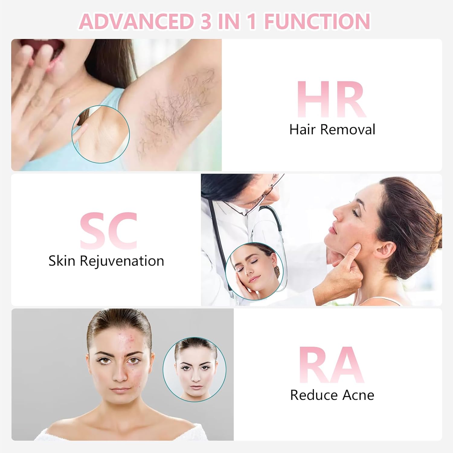 IPL Hair Removal Device, Jitesy IPL Hair Removal with Sapphire Ice-Cooling Technology for Women Permanent, 3 IN 1 Function for Hair Removal&Skin Care for Facial Armpits Legs Bikini Line Whole Body