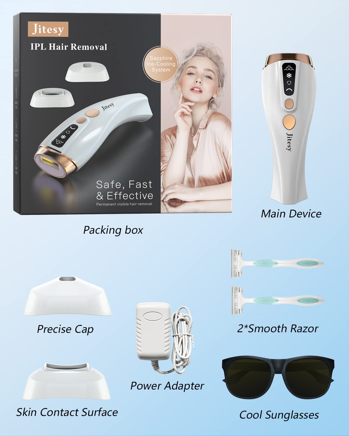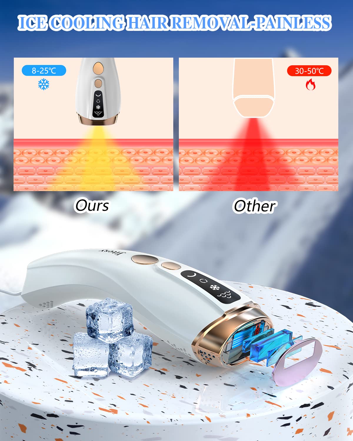 COOLING TECHNOLOGY: This IPL hair removal with cooling system, which can lower the temperature to 46°F (8°C) while flashing, let the skin get a pain-free experience and reduced heat sensation.