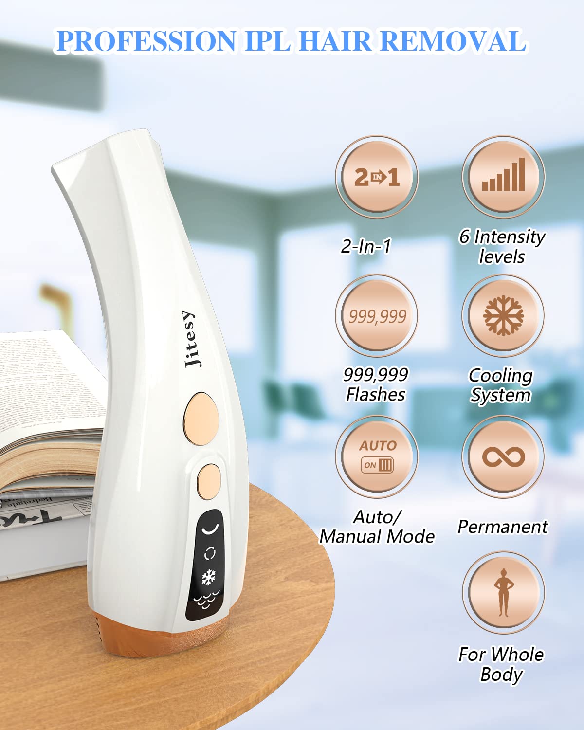 IPL Hair Removal for Women and Men, Permanent Hair Removal with Ice Cooling, Painless 2-in-1 Hair Remover Device Home Use, Unlimited Flashes for Whole Body Use Facial Back Arms Legs Bikini