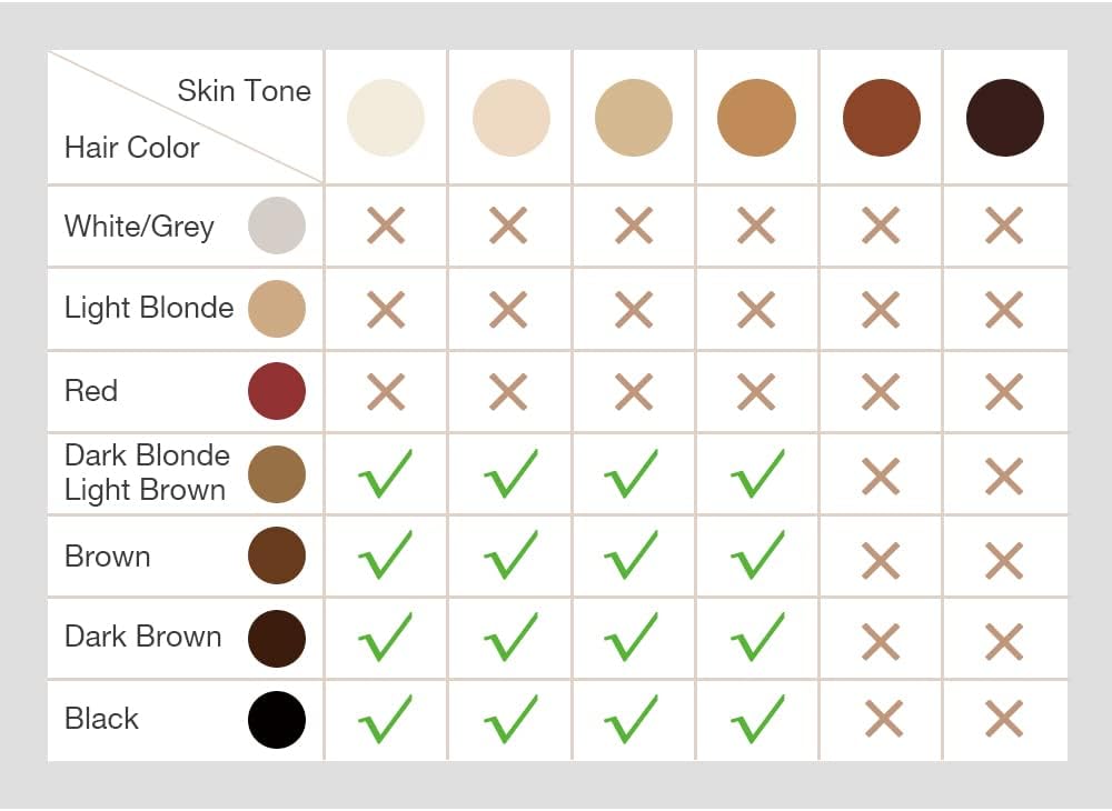 Black ✔ Dark Brown ✔ Brown ✔ Dark Blonde/Light Brown ✔