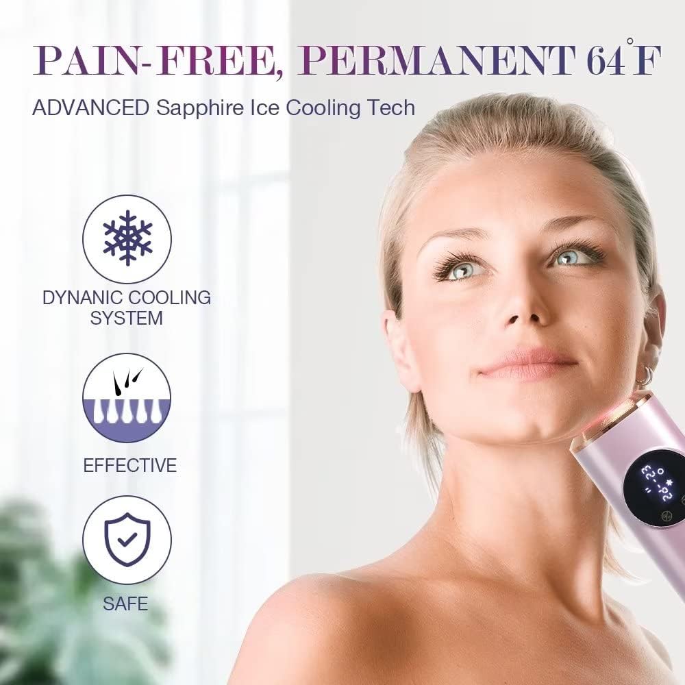IPL Laser Hair Removal Device for Permanent Painless Face Bikini, Tailored Beginner Sessions Home Use Sapphire Cooling IPL Epilation for Women & Men’s Whole Body Hair-Free Results, Unlimited Flashes