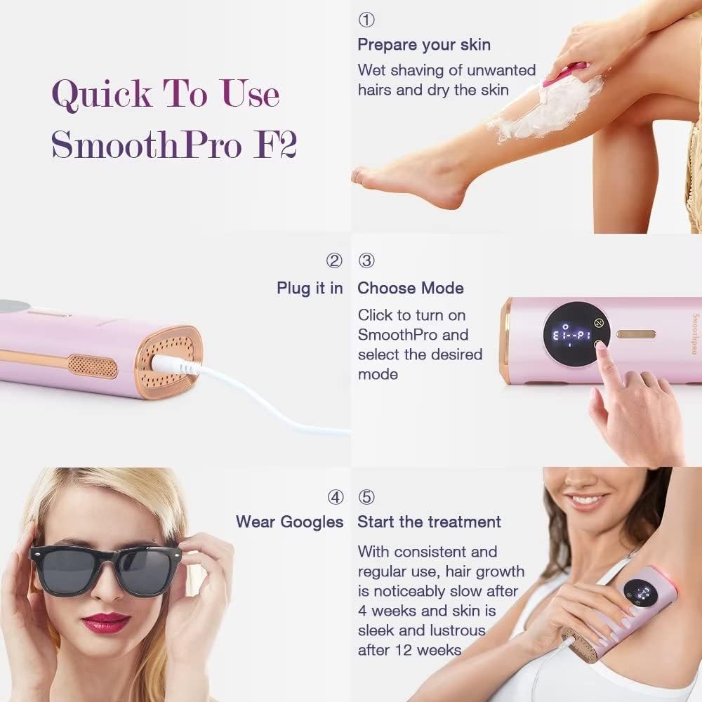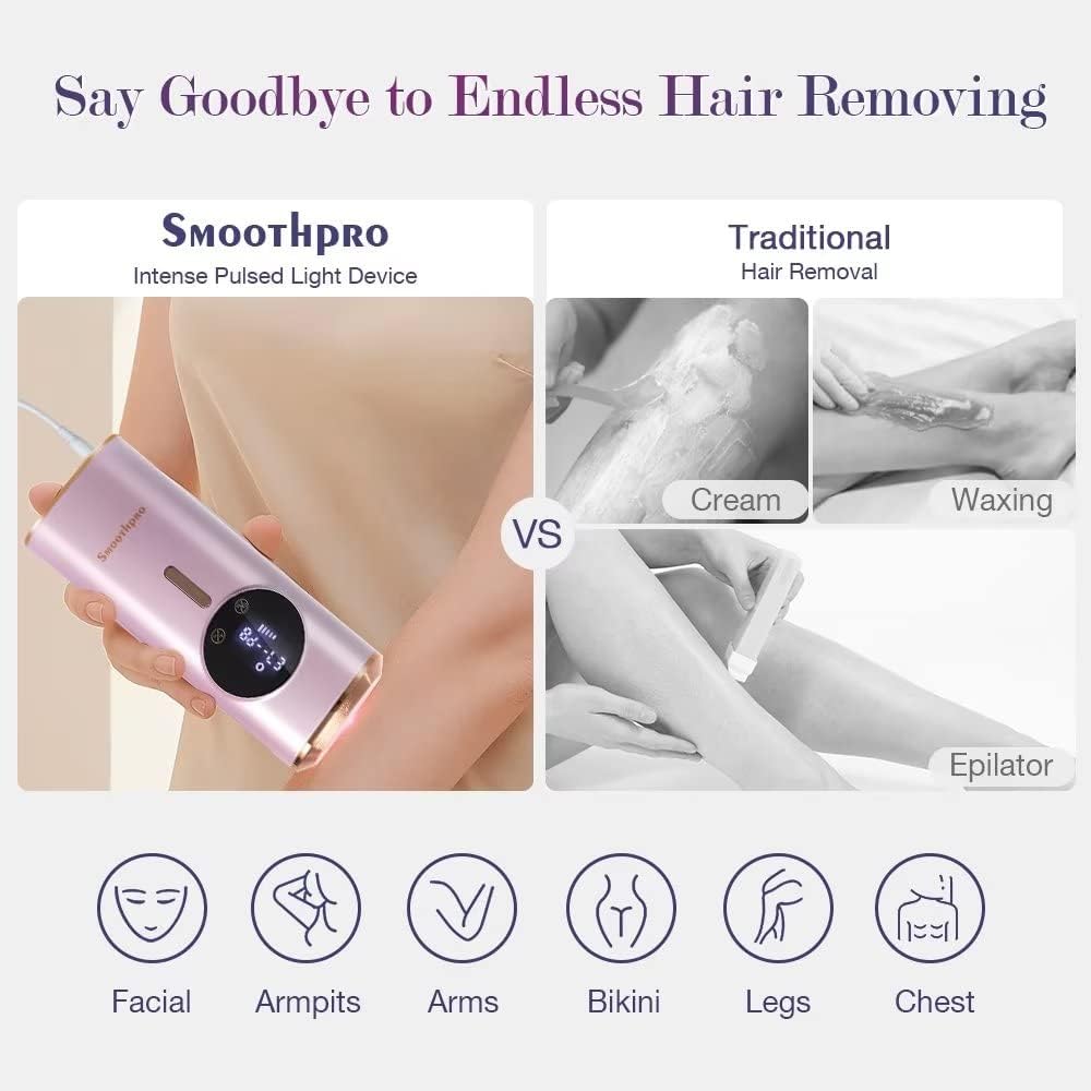 SmoothPro’s Professional IPL | Why IPL becomes the Current Trend? This tested, high-tech hair removal method uses Intense Pulsed Light energy to target the hair roots accurately and break hair growth cycles. SmoothPro IPL Hair removal device uses the lastest IPL technology, makes IPL hair removal at home more efficient, safer and comfort than ever before, you can clearly see a major reduction in hair growth in 4 weeks, hairs will become sparser, thinner and softer, and stop growing eventually!