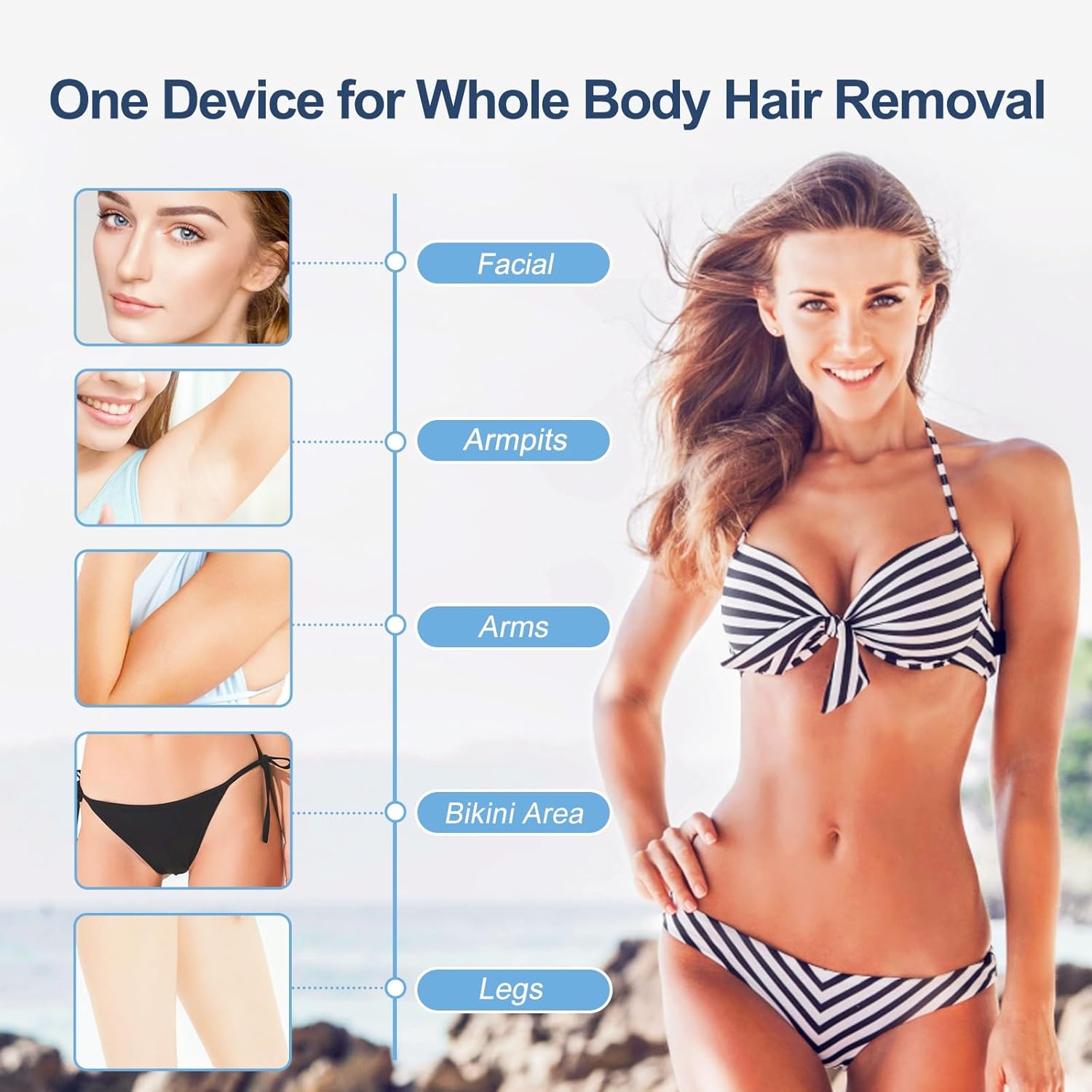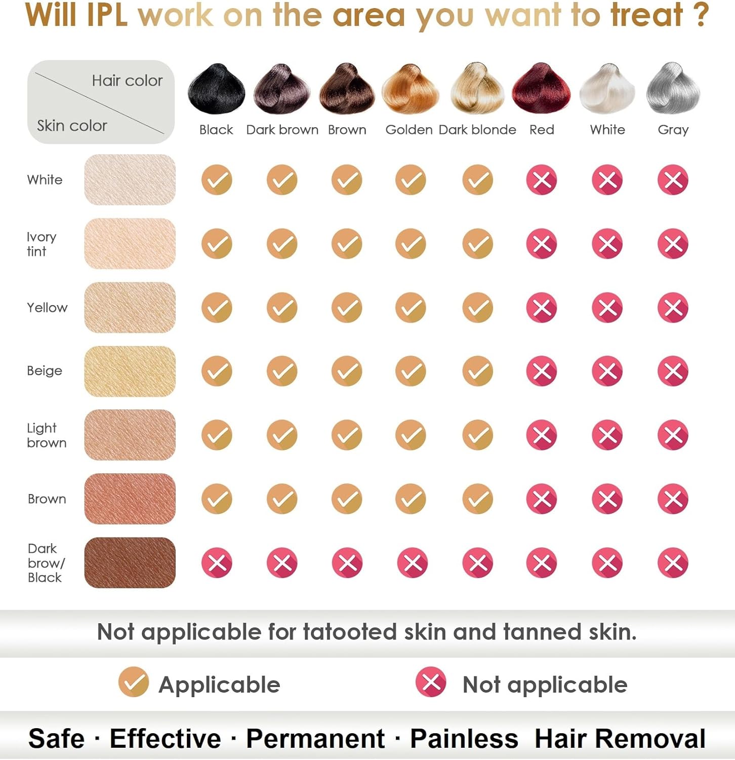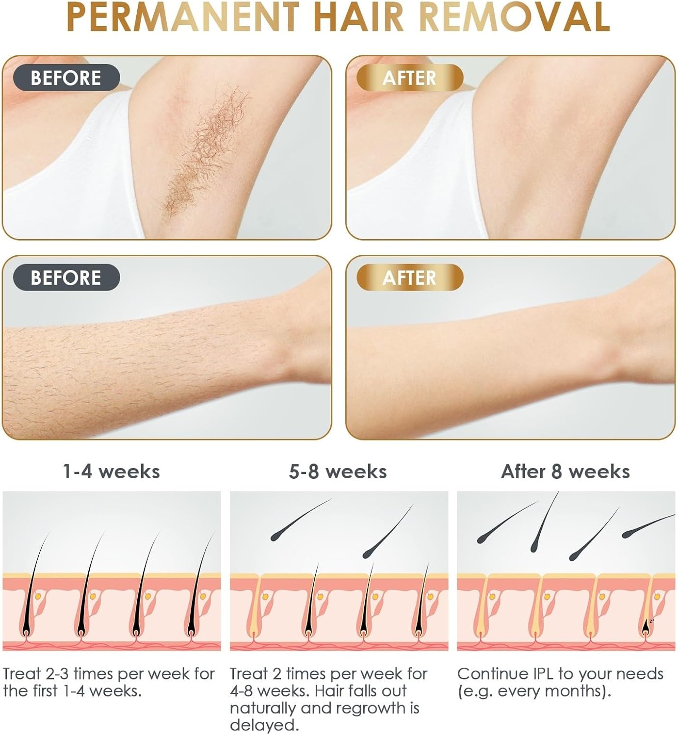 【Painless Hair Removal】You will have access to a Permanent Painless effective hair removal. With no burning sensation, one station beauty and hair removal system. It is also safe for use on sensitive skin and can be used at home or in the salon.