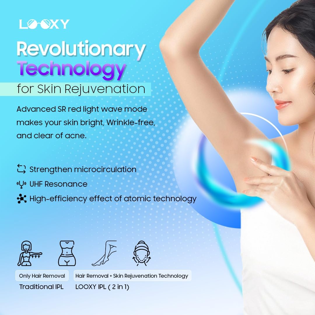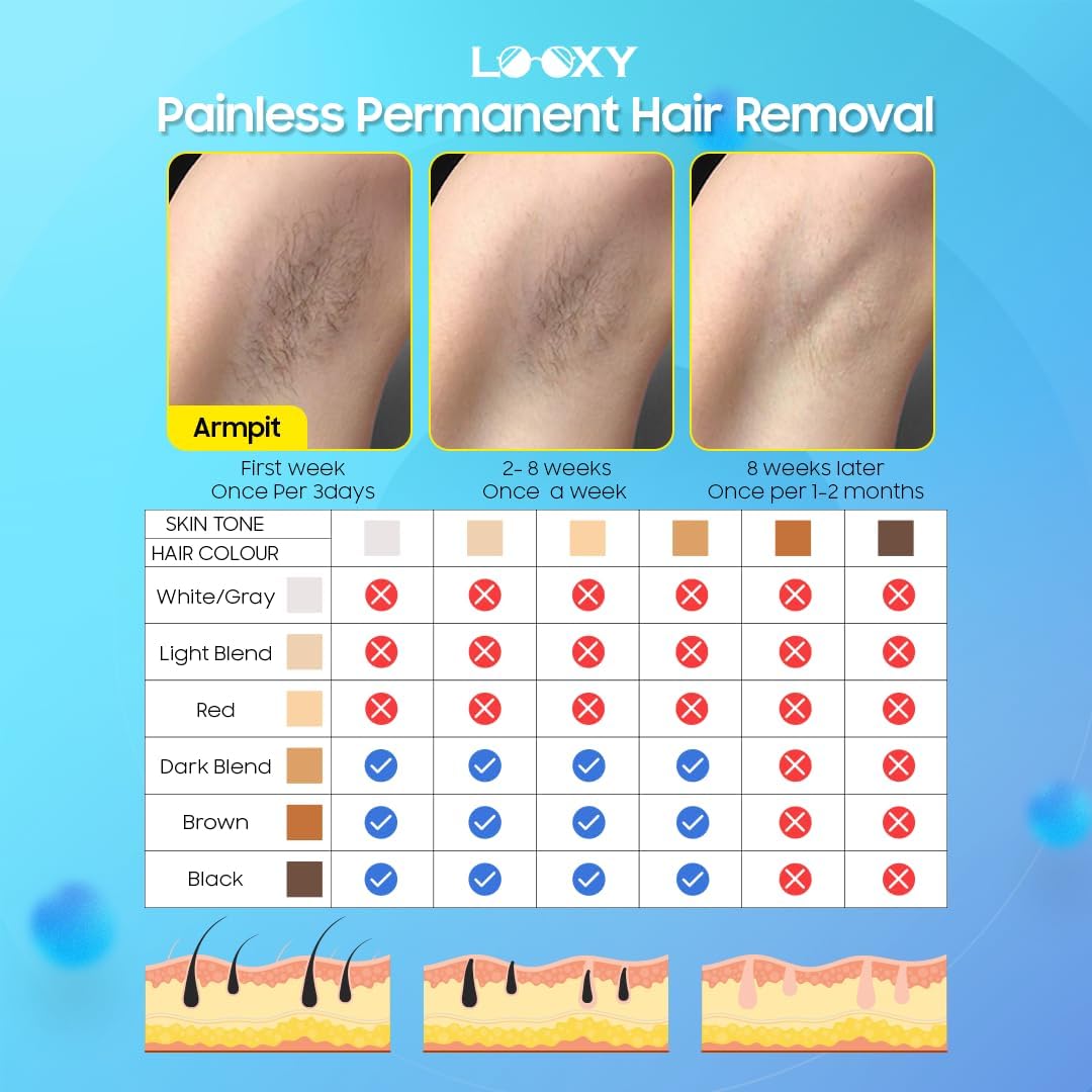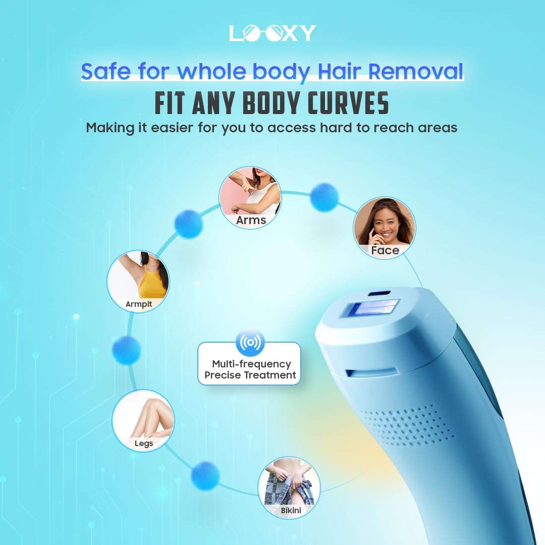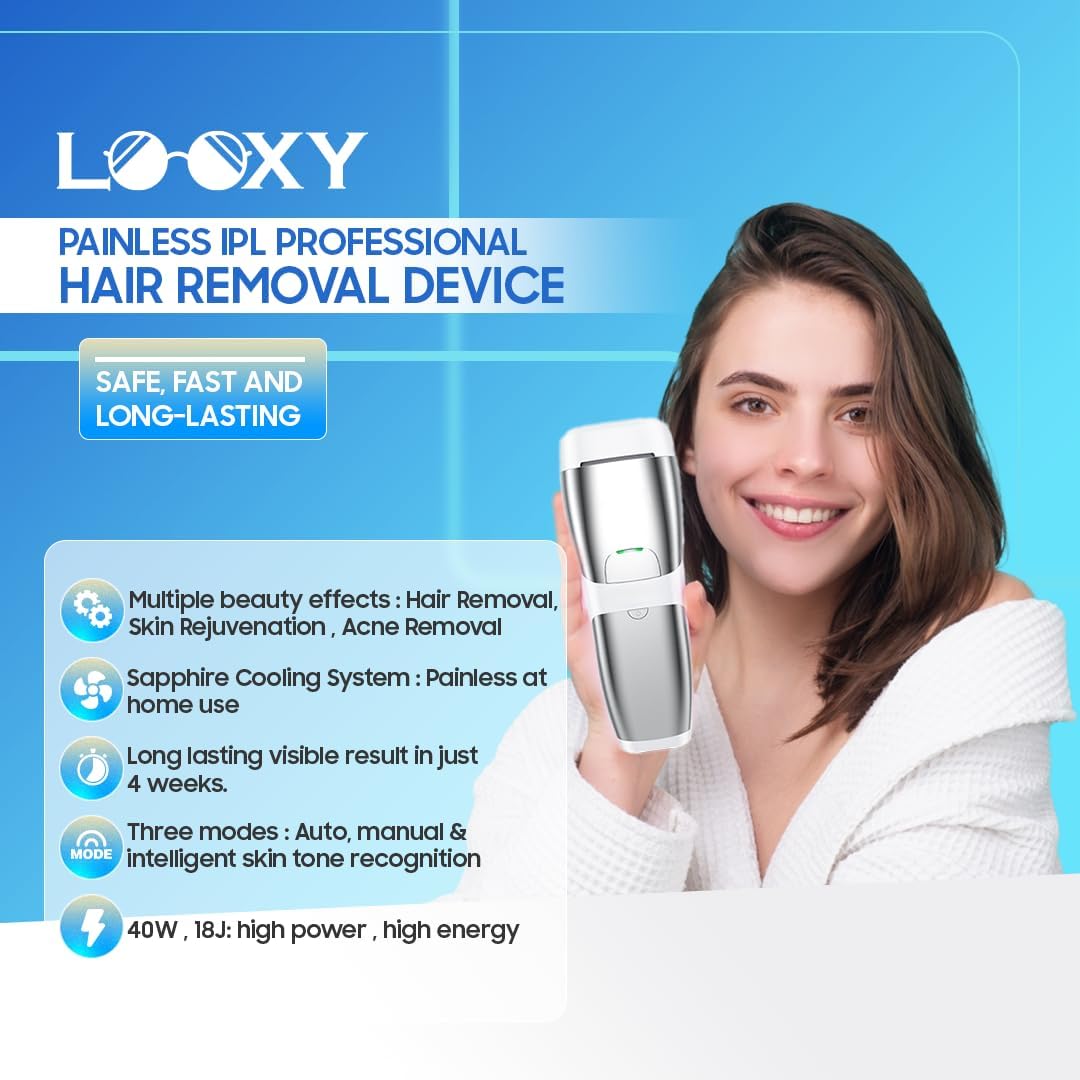 PERMANENT HAIR REMOVAL- LOOXY uses gentle light to target hair follicles, effectively instigating hair dormancy and ultimately breaking the cycle of hair regrowth. Achieve visibly smoother skin within four weeks of use with this pain-free at home laser hair removal for whole body saloon grade treatment.