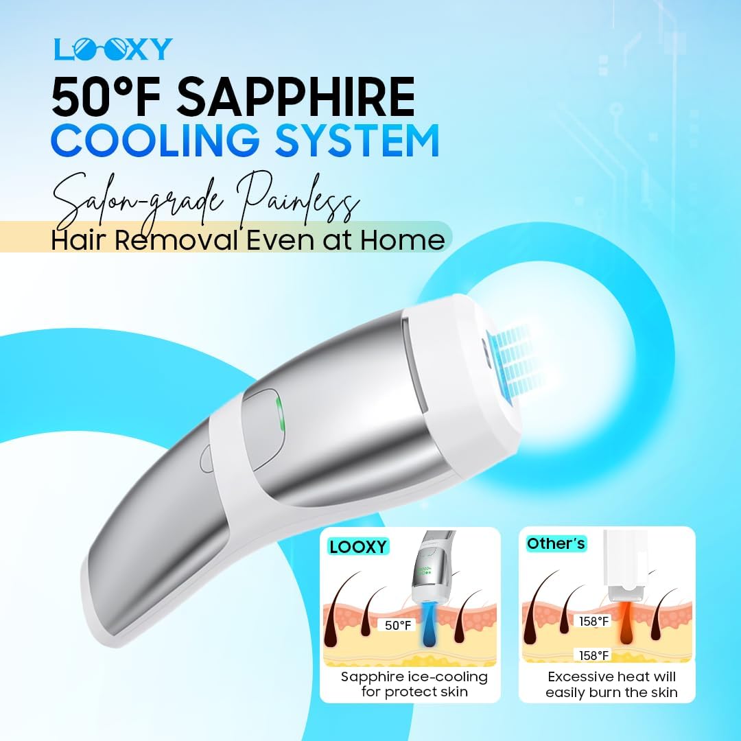 SAPPHIRE FREEZING POINT COOLING SYSTEM- The Upgraded Sapphire cooling technology maintains a comfortable temperature between a consistent 10-15°C (50-59°F) on your skin throughout every laser hair treatment, mitigating discomfort or any risk of skin burns.