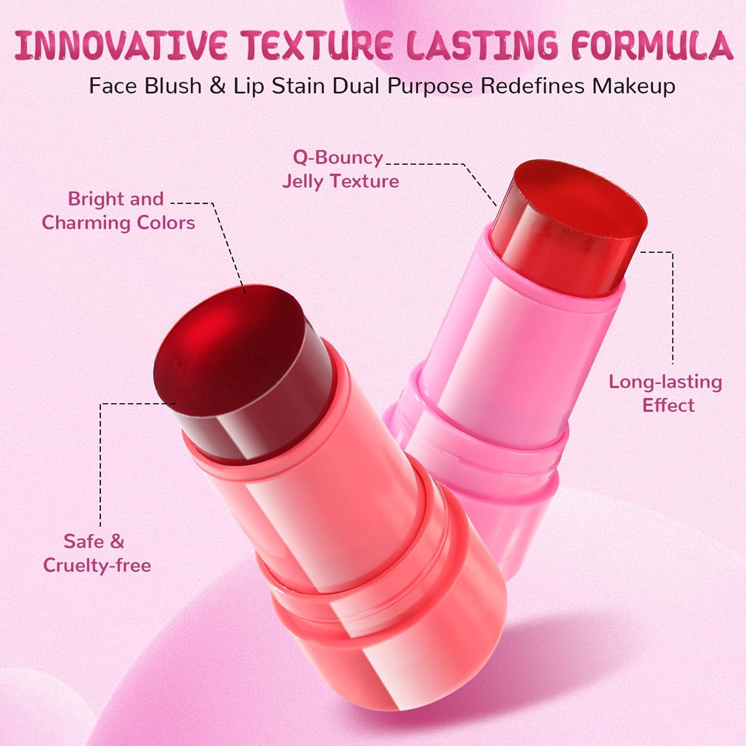 🔥【MULTI-PURPOSE】- This jelly blush stick can be used on your cheeks, lips and eyes. It has a good waterproof and non-stick effect, which can make your makeup more long-lasting and more natural.