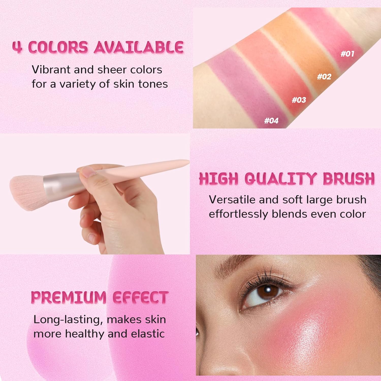 🔥【BLUSH BRUSH FOR CHEEKS】- Our cheek tint set includes a soft, skin-friendly blush brush that helps you apply jelly blush to your cheeks effortlessly. (Due to its QUICK-DRYING properties, it is recommended that you blend it evenly immediately after application)