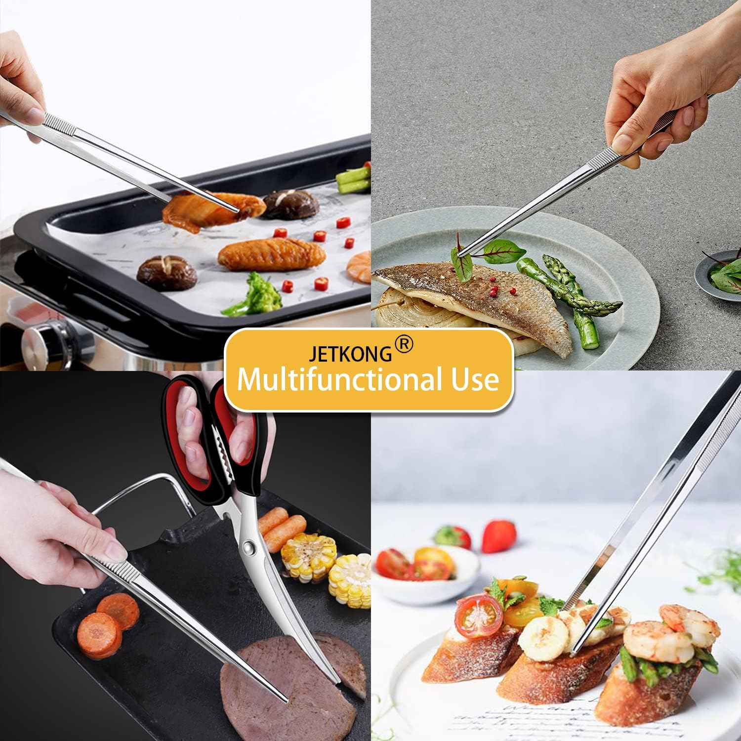 JETKONG Extra Long Kitchen Tweezers Heavy Duty Stainless Steel Cooking Tweezers, Set of 3 (9 12 14 Inch, Silver)