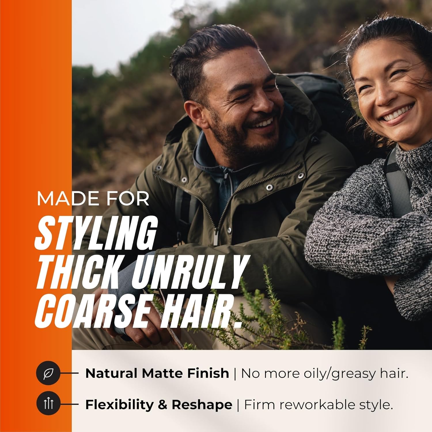 Achieve attractive matte natural hairstyles with super strong hold while giving you flexible styling. Ideal for thick and coarse hair types.