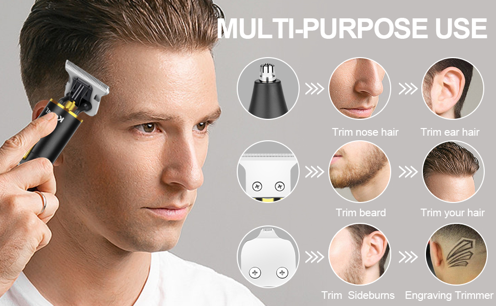【All-in-One Beard Trimmer】Featuring 6 different attachment heads, a wide T-Blade for beards and mustache trimming, haircuts, touchups, body grooming, & detailing. The precision detailer head is for details, clean-up, & complex designs
