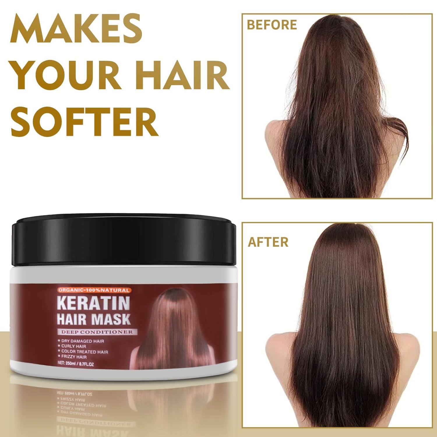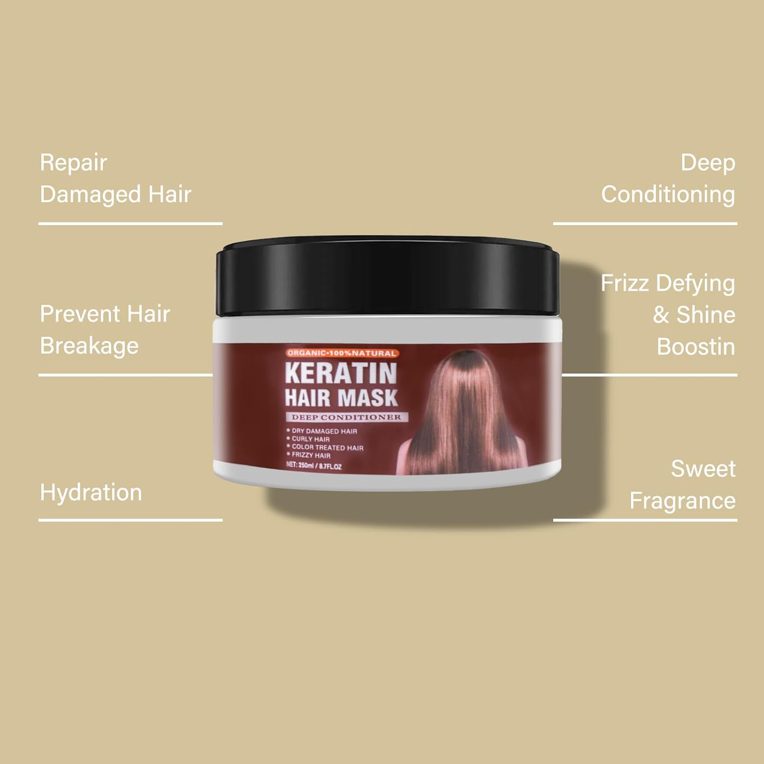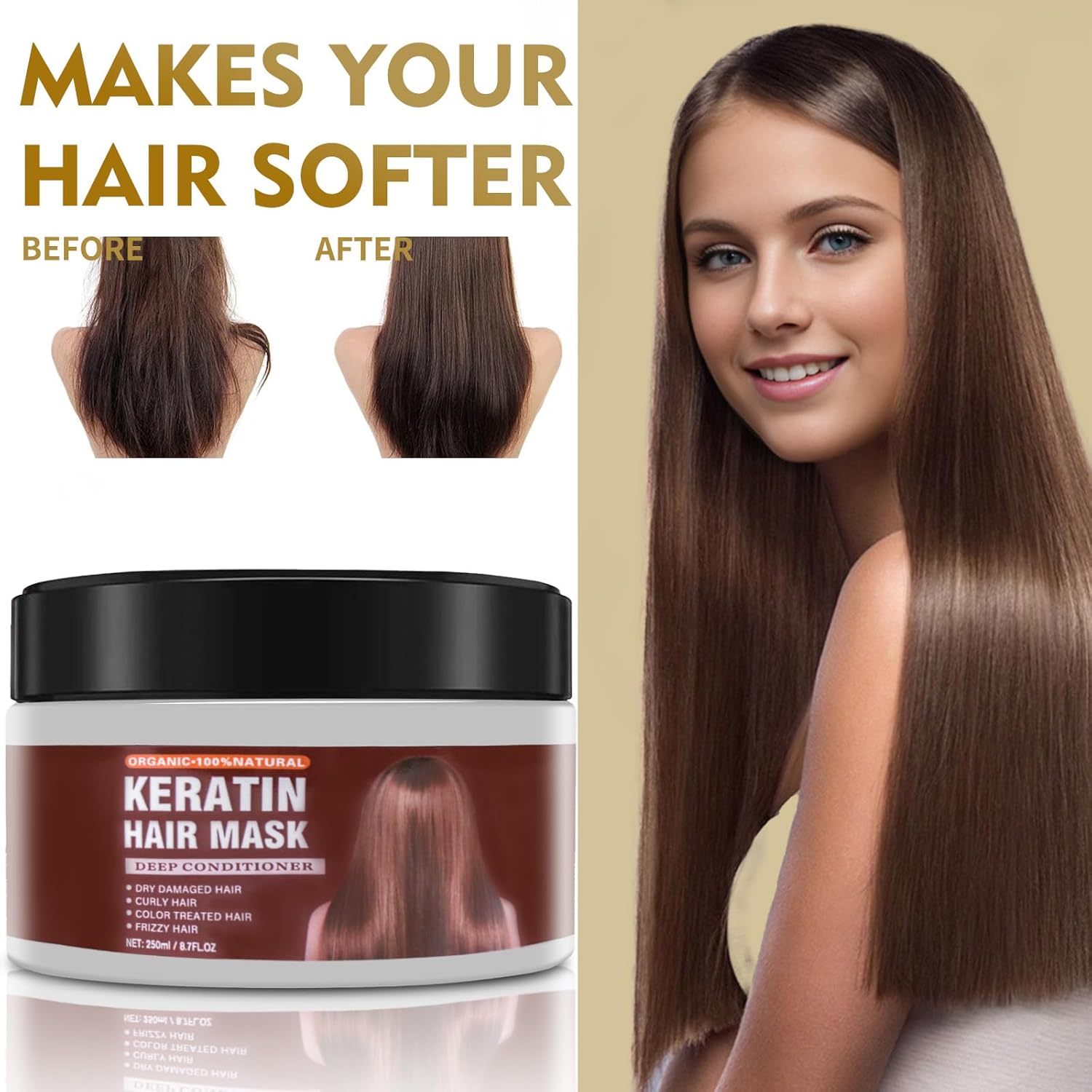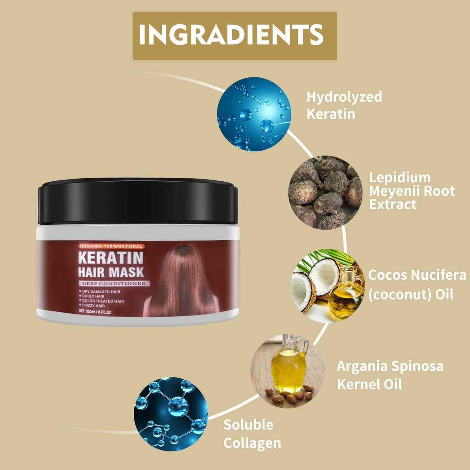 Keratin Hair Mask for Damaged Hair – Deep Repair Conditioning Argan Oil Treatment for Curly or Straight Thin Fine Hair E 8.7 Oz