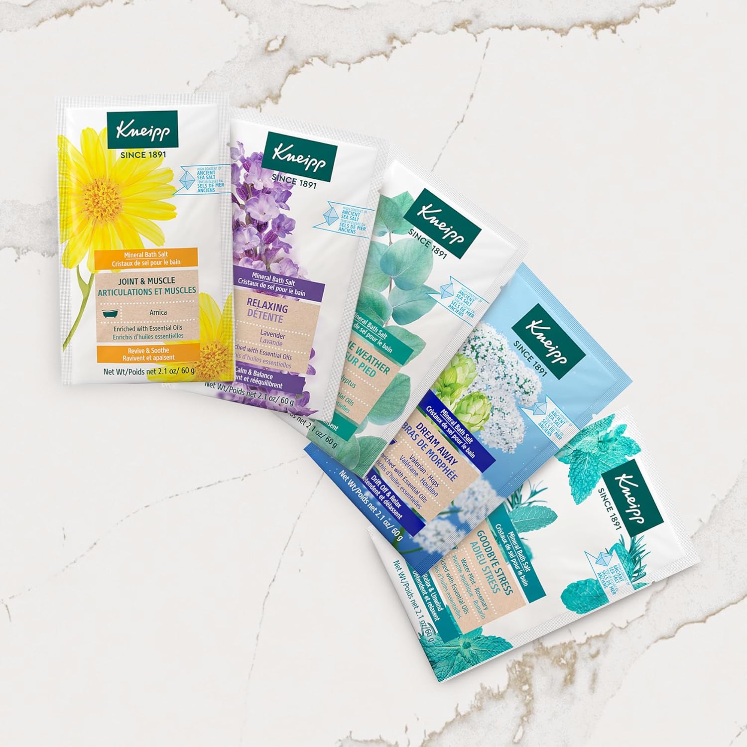 Kneipp Mineral Bath Salt Variety Pack – Includes 2 of Each: Joint & Muscle, Relaxing, Under The Weather, Dream Away & Goodbye Stress (10 Total) – Each 2.1 oz Packet Delivers One Bath