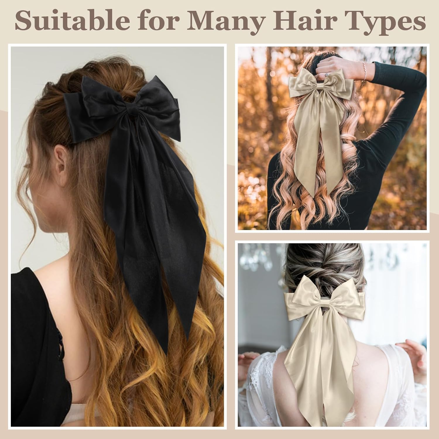 【Reliable Material】These oversized hair bows for women are made of satin fabric, soft and smooth, and has a natural drape. The metal hair bow clips are sturdy, easily hold your hair in place and stay put while you wear them all day long.