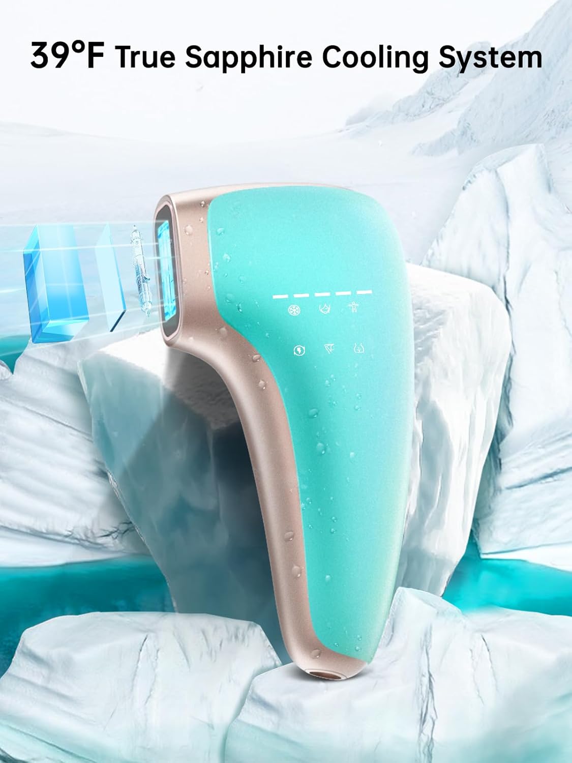 【❄️True Sapphire Ice-Cooling System —39°F Freezingly Painless Treatment❄️】Equipped with the Clinical-grade ice-touch technology -Sapphire cooling system, YOEYOU U7 laser hair removal for women can make the skin temperature immediately lower to 39℉ before emitting the pulsed light, soothes the burning sensation and won’t cause skin redness or swelling. Making the hair removal treatments truly painless and Skin-Friendly.