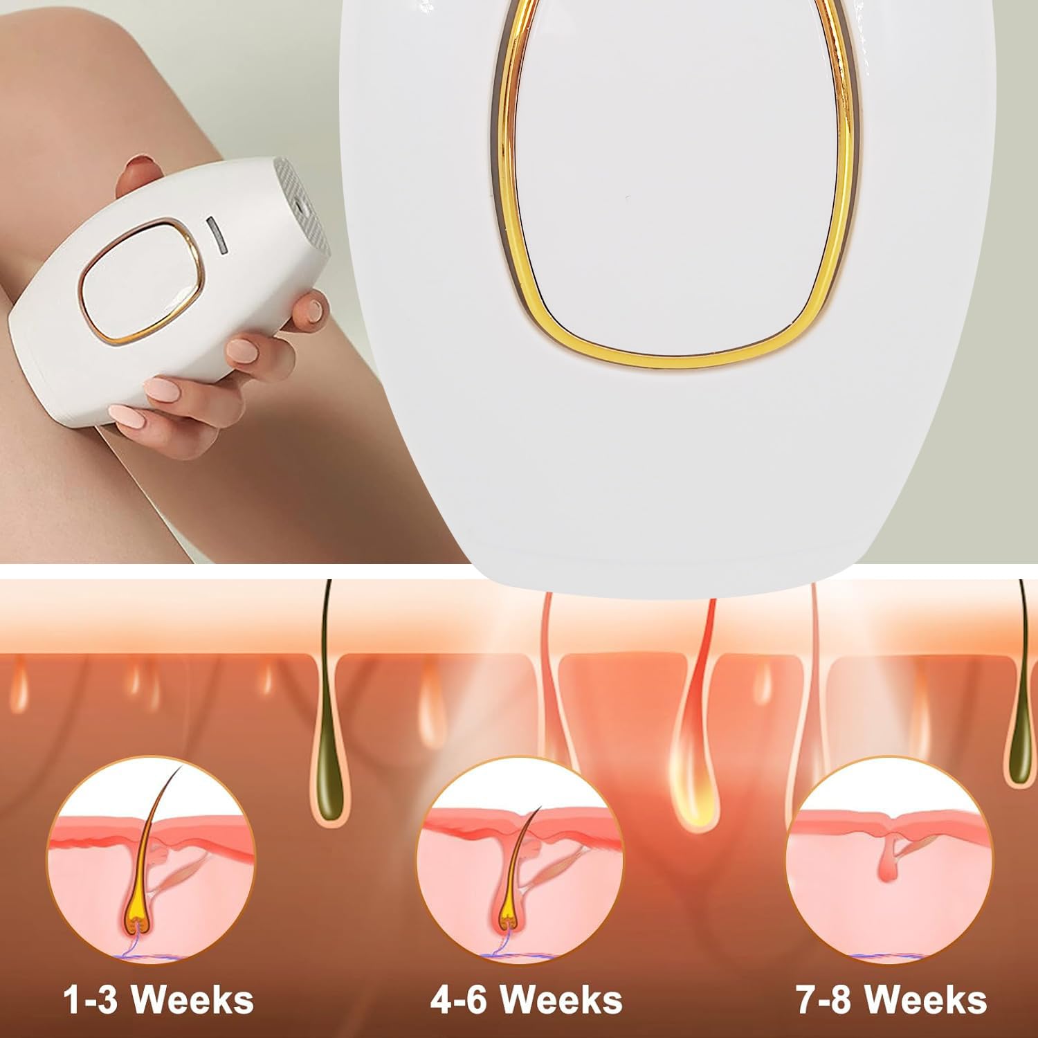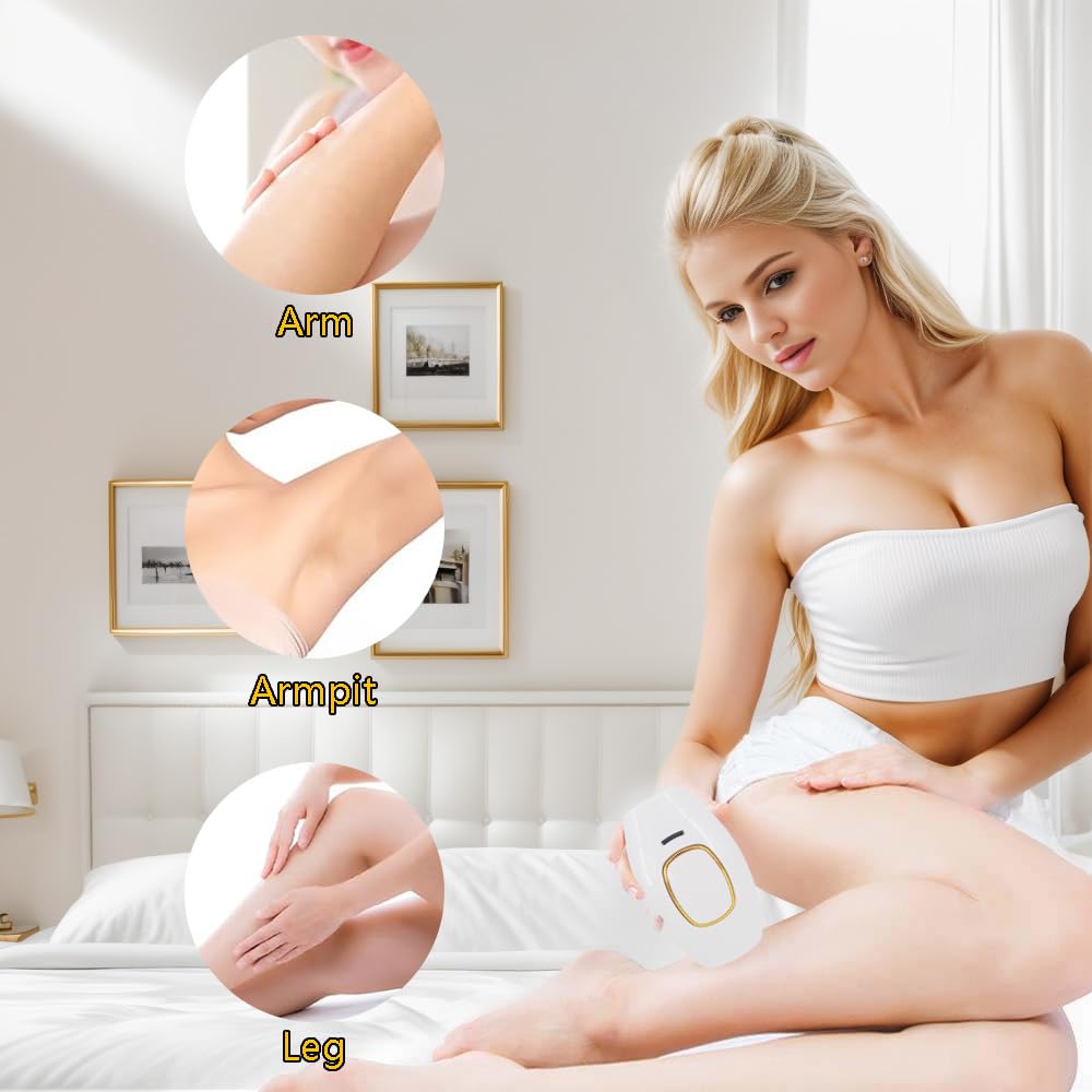 【Laser Hair Removal for Women】The hair removal device targets unwanted hairs at the root without burning or damaging your skin. Laser hair remover also has a flash safety feature, so you need to wear protective glasses when using it