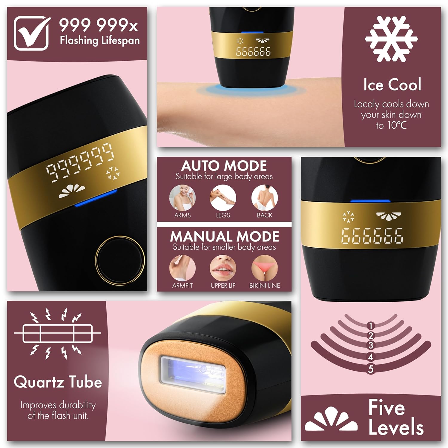 Laser Hair Removal for Women and Men, Ice-cooling IPL Device Hair Removal for Nearly Painless & Long-Lasting Results, 3 Modes & Auto Flashing for Fast Full Body Hair Removal From Home