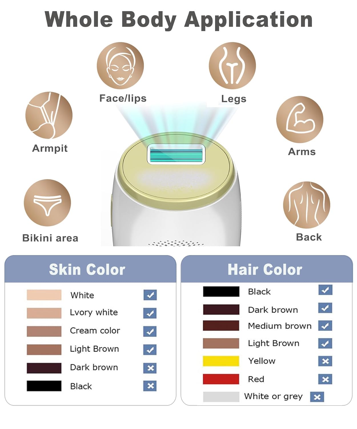 Full-body hair removal made easy: This laser hair removal tool can vanquish unwanted hair from top to toe. Whether it’s your legs, arms, or bikini area, it works effectively everywhere. The auto-glide mode with rapid flashes allows for a quick, full-body treatment right in the comfort of your home.