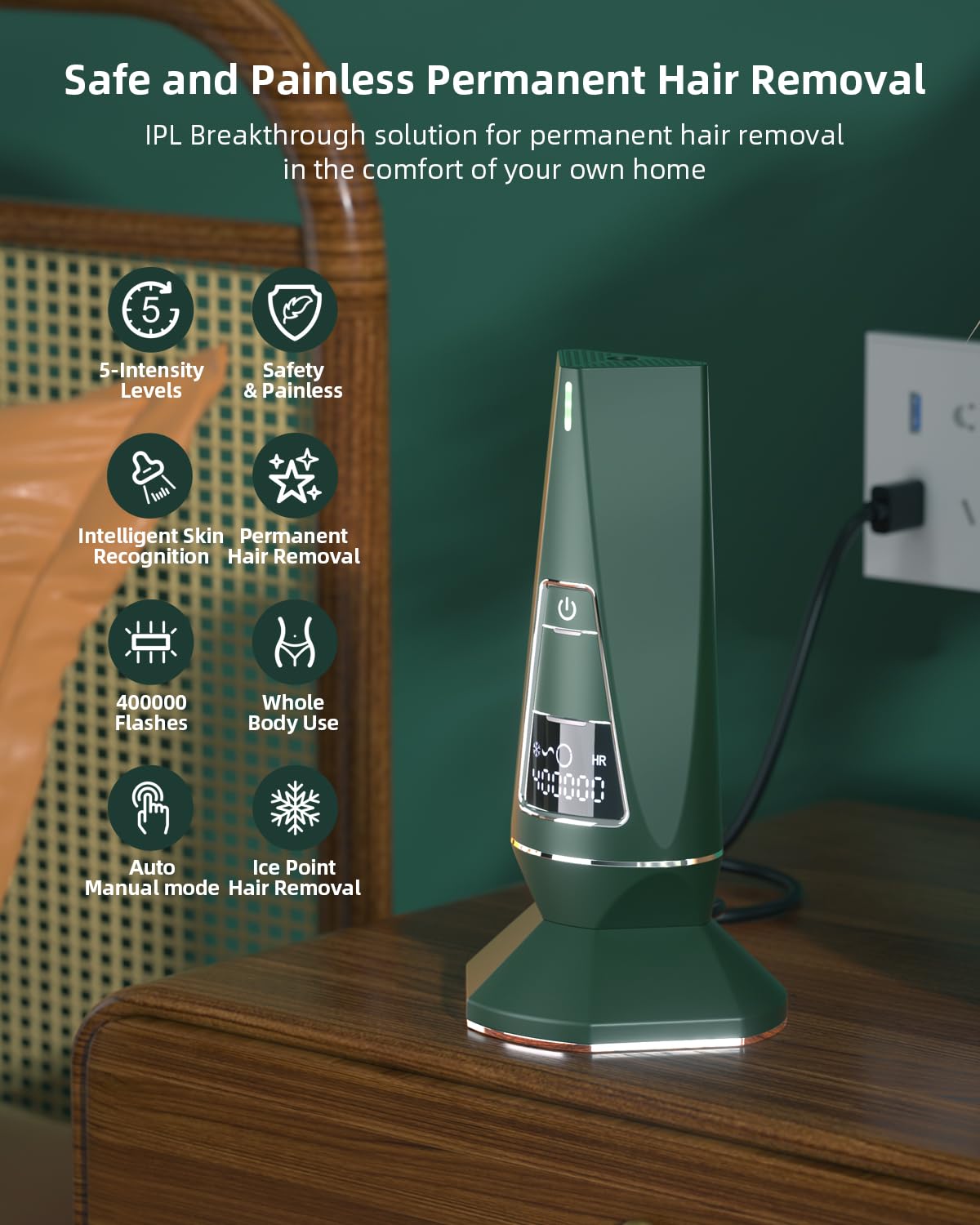 Safe and Painless Permanent Hair Removal: – Bid farewell to shaving, waxing, and plucking! Our IPL laser hair removal device offers a breakthrough solution for permanent hair removal in the comfort of your own home. It targets hair follicles with precision, effectively reducing hair growth over time, and leaving you with long-lasting results.