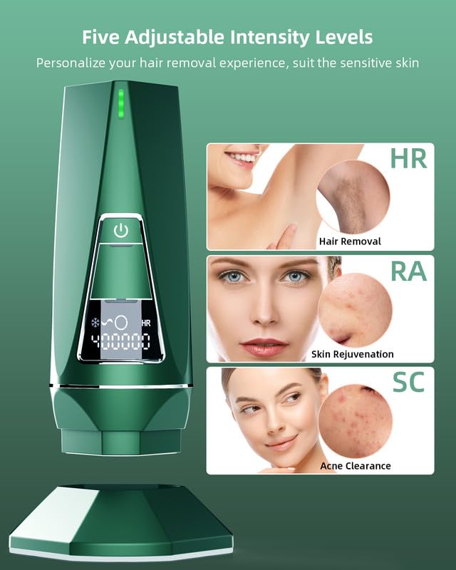 Five Levels to Choose From: We understand that everyone’s tolerance and hair removal needs are different, Personalize your hair removal experience with our five adjustable intensity levels. Whether you have sensitive skin or require more powerful treatments, our device offers the flexibility to meet your unique needs.