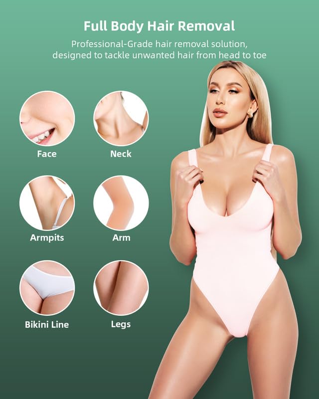 Full Body Hair Removal: Our IPL laser hair removal device is designed to tackle unwanted hair from head to toe. Specially designed to protect sensitive areas such as your face, bikini area, back of hands, toes and underarms while removing hair from them. You can now enjoy smooth and flawless skin without worrying about irritation or burns.