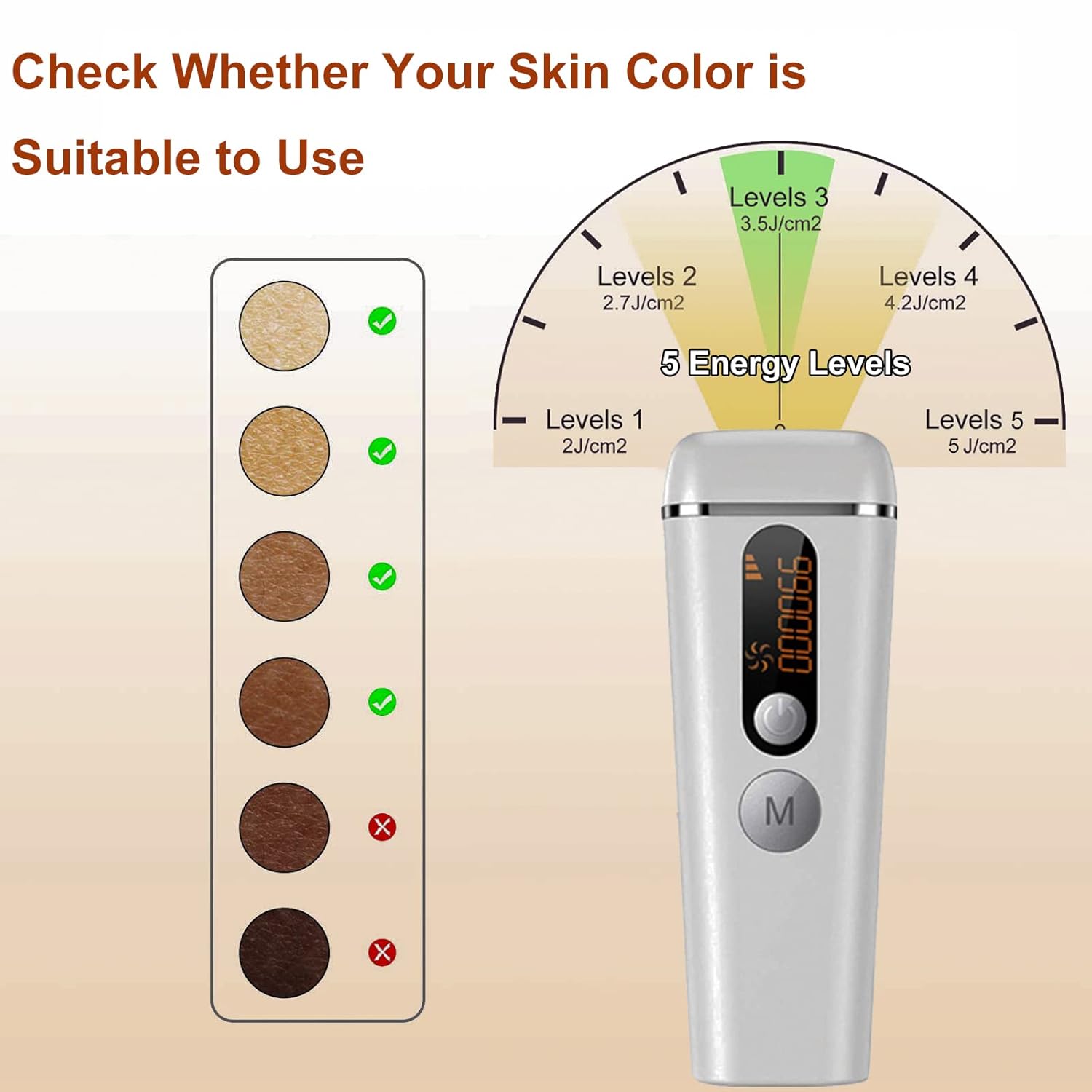 【5 Energy Levels】: The laser hair remover has 5 levels for different skin style needs, you can adjust the level suitable for yourself. Kindly notice: we suggest that using from low to high for skin fitness.